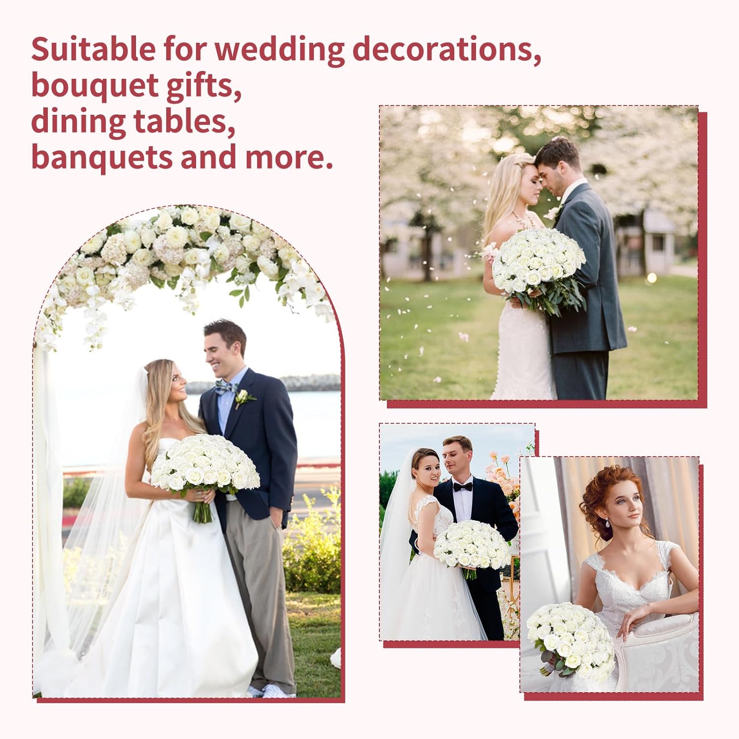 | Recommended Uses For Product | Wedding bouquets, Christmas Xmas decoration, Home decor, Indoor, Outdoor, Cake decorating, Wreaths, Garland, Baby shower decor, Birthday Valentine Anniversary Mother's Day flowers arrangements, Wedding Centerpieces, Boutonnieres, Bridal shower decorations |