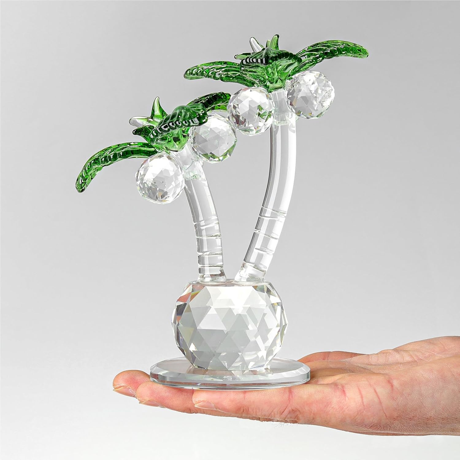 Feature: 1: Material: white crystal. It is made of reliable and practical crystal material. It is durable and can be used for a long time. 2:Size: about 12-15cm tall. 3: Coconut Tree Statue: use this exquisite crystal coconut tree statue to decorate can improve your taste of life. 4: Crystal Table Saint Decoration: Crystal Coconut Tree is very suitable for home decoration, can create a unique art and modern atmosphere. 5: widely used: perfect coconut tree decoration, suitable for outdoor terrace, swimming pool, beach, courtyard, living room, home, indoor and outdoor decoration. Add a tropical and vibrant look to summer Hawaii, Tiki bars, campers, and Hawaiian party holidays. Specification: