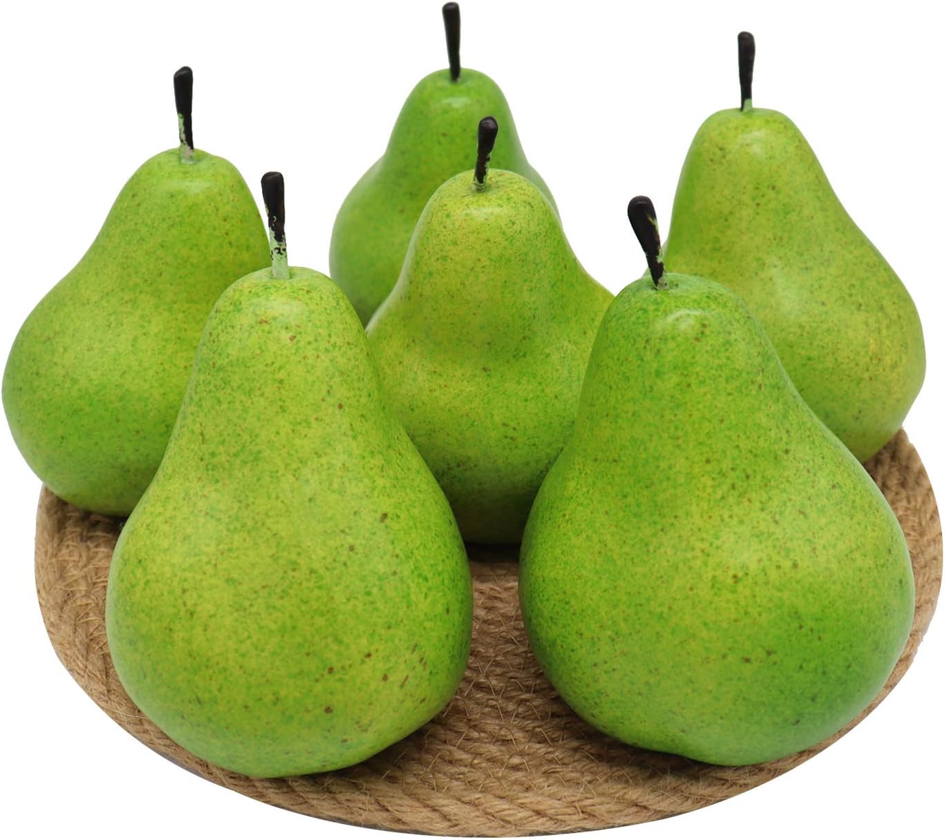 Description:Material:Made by high quality foam;Size: Diameter: 8 cm, Height: 9 cm;Weight: about 25 g/pcSuitable occasion and application: well suit for home,house,kitchen,office and commercial use,Good for showcase in food trade,fruit shop,bakery, kindergarten children's cognitive models, photography Decorations,etcPackage includes:12 PCS Artificial Green Pear only in a box