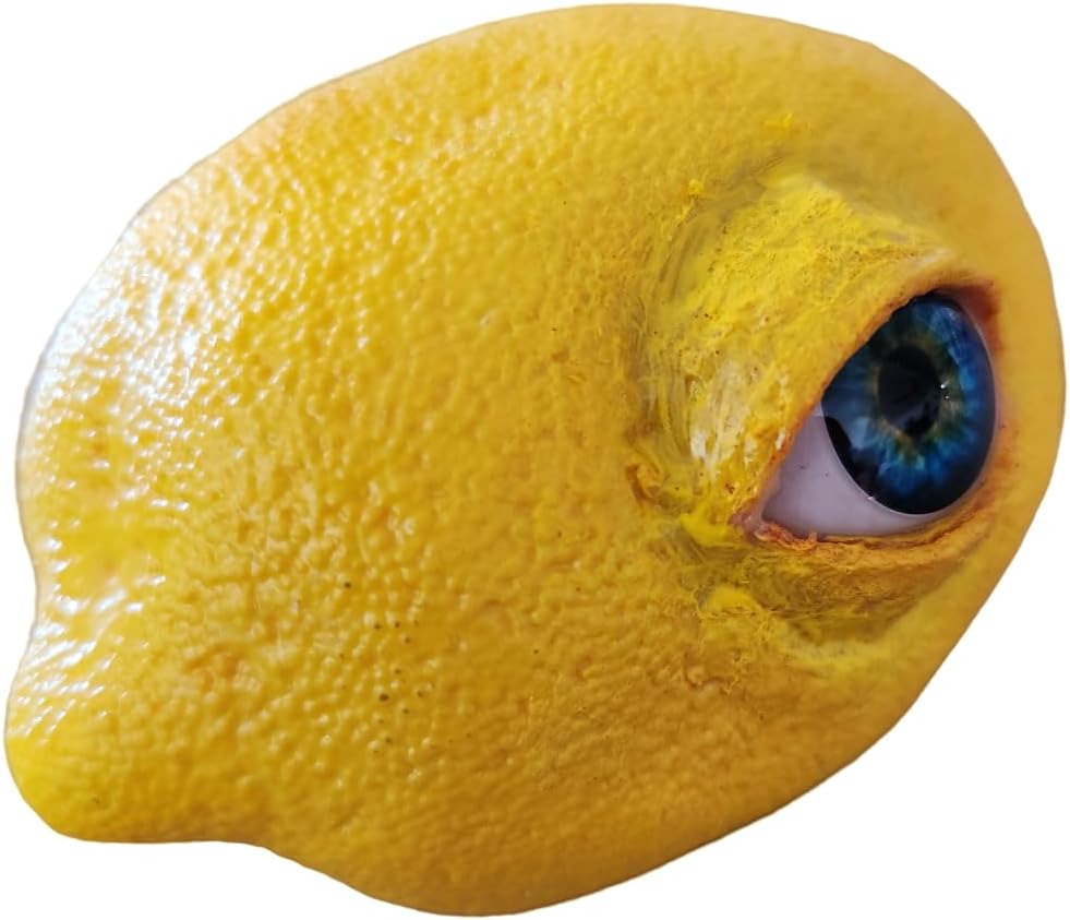 This is a new All Seeing Lemon. Freaky Fruit with Realistic Premium Acrylic eye. Made by Dead Head Props. Unique item, great for a gift. The eye is fixed and does not move. These are custom made, so please allow 3-5 days before shipping. 2.5 inches by 3.5 inches.
