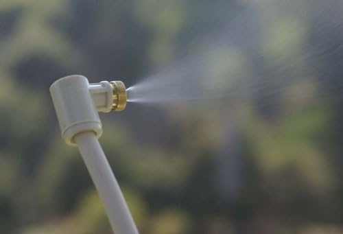 7 Nozzle Fan Mister - Great for 36" Fan - Outdoor Misting Systems – No Electric Fan is included. Now you can keep cool outside just by attaching the "Fan Mister" to your electric fan. Keep cool outdoors Economically and Ecologically. The Fan Mister will chill temperatures up to 30 degrees F. By attaching the Fan Mister to your electric fan, cool mist will blow further, and an oscillating fan will distribute the cold air throughout the space. Complete fully assembled 7 nozzle Fan Misters include: 7' of 1/4" Polyethylene tubing with 3 brass misting nozzles installed at 6" intervals. 3/4" FHT Swivel x 1/4" compression-lock tubing to hose thread adapter. System is fully assembled, packed in bulk with less decorative packing materials for lower costs and to reduce trash. We usually ship First Class Mail (USPS) on Tuesdays and Thursdays, unless urgent shipping is requested. The number of nozzles on your Fan Mister depends on the size of your fan and strength of fan. Hi velocity fan may add 2 nozzles. Here are recommendations: Less than 12 " diameter.......1 nozzle 12" to 16"...........................3 nozzles 16" to 24"...........................5 nozzles 24" to 36"...........................7 nozzles Use only Standard Garden hose, ¾ diameter with the threaded part is 5/8”. This is the most common hose being used in the United States and Canada. You do not need any electric pumps. For the foreign customers, we recommend to use Expedited Mail. It usually takes 1 to 2 weeks but regular 1st class International mails may take 3-4 weeks. For more information, please enter the words “kaz-usa cool mist” to the browser. To order 10 assorted fan misters, you will get 20% off and one combined shipment with $12.00 USPS Priority Mail (US destination only, other countries please e-mail the quotation)