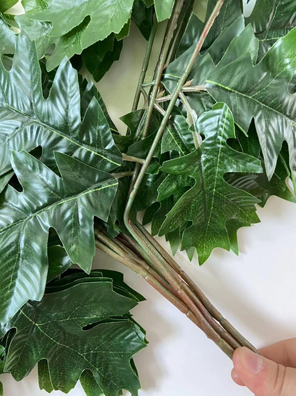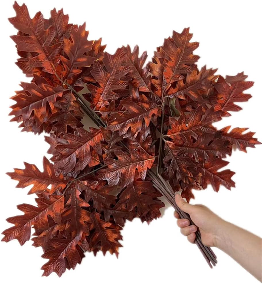 12pcs Artificial Oak Tree Branch Faux Eiche Leaf Stem Three Forks per piece for Greenery Wall Floral Decoration (Dark)