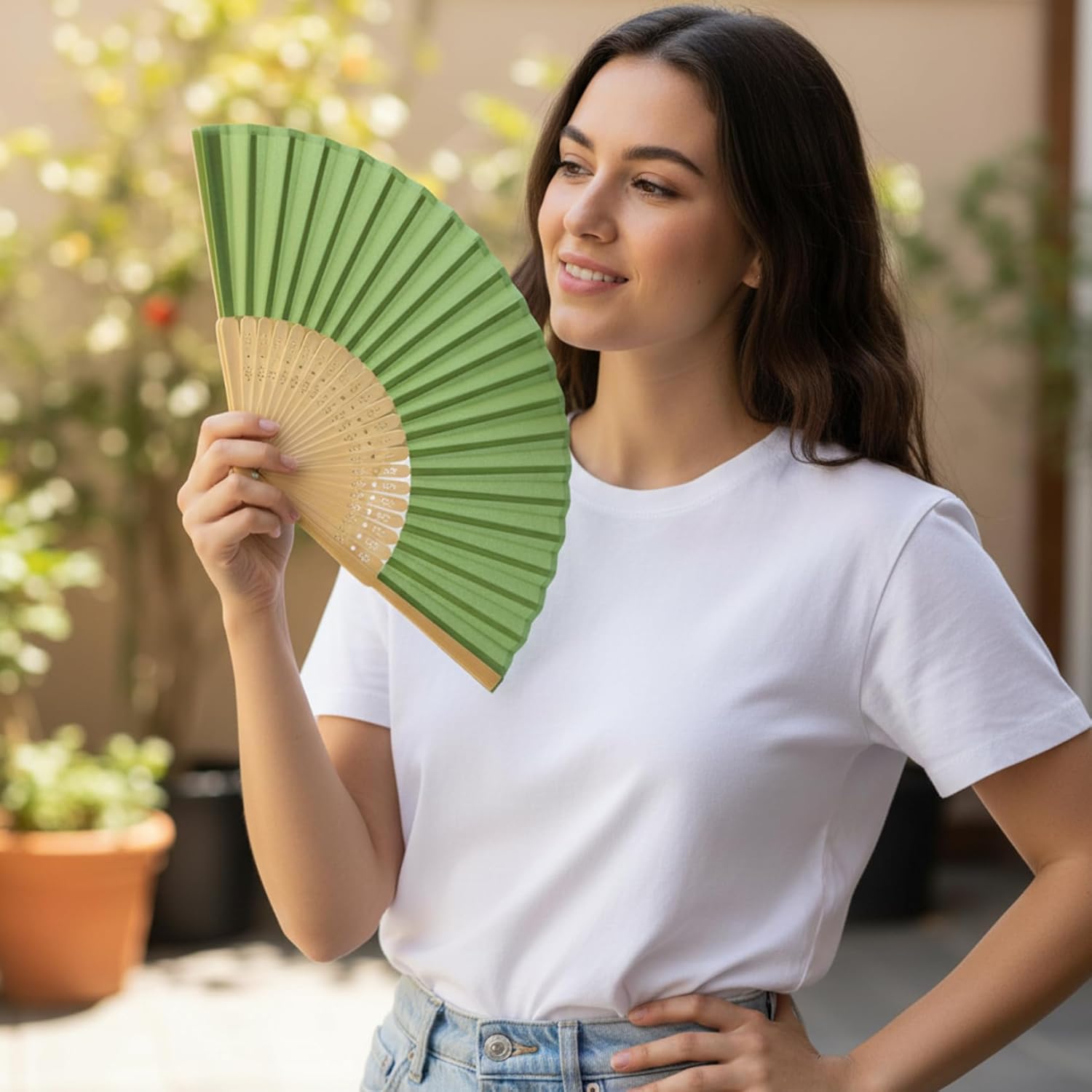 Description: Experience the beauty of traditional Chinese culture with our elegant green folding fans, available in a practical 25-piece set. These authentic bamboo fans feature green fabric surfaces and fold neatly to 8.3 inches for convenient handling, then open to impressive 15-inch diameters that showcase their beautiful circular form. The natural bamboo construction ensures lightweight durability while maintaining traditional craftsmanship appeal. Ideal for wedding celebrations where they can serve as guest favors, ceremony programs, or decorative elements, these fans also work wonderfully for cultural events, theatrical productions, and home decoration. Their versatile design allows them to function as both practical cooling instruments and beautiful decorative pieces. The bulk quantity makes them perfect for event planners, cultural organizations, or anyone seeking to incorporate authentic Chinese elements into their special occasions. These fans represent the perfect marriage of traditional design and practical functionality, bringing cultural elegance to modern events and settings. Features:. Folding Fan. -Color: Green. -Material: Bamboo. -Size: Fold 21cm/8.3inch. Unfold diameter 38cm/15.0inch. Note:Manual measurement, please allow slight errors on size.The colors may exist slight difference due to different screens. Package Including 25Pcs Folding Fan