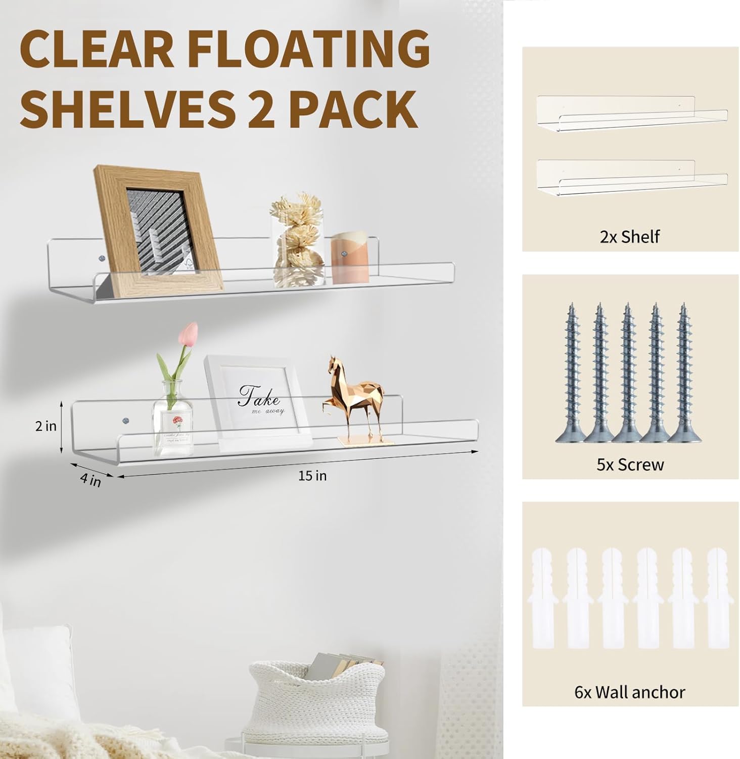 | Assembly Instructions Description | The wall shelves comes with Pre-drilled holes are matched with complete installation hardware such as screws and plastic spacers. No complicated tools are needed, and the installation can be completed in a few minutes. Even installation novices can easily handle it! |