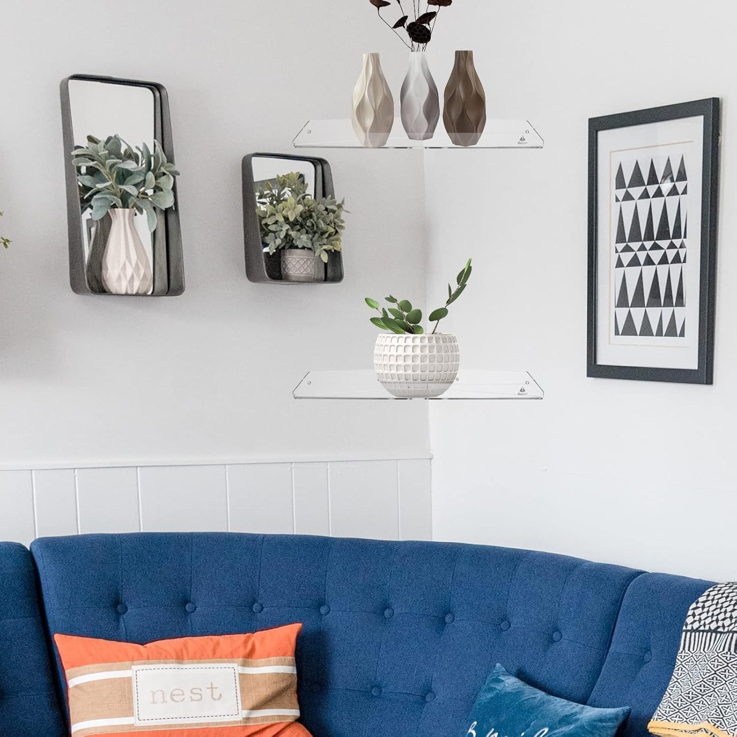 TXEsign Acrylic Corner Shelf Wall Mount for Speakers, Plants, Webcam Etc Specification: ✈Color: Transparent ✈Material: Acrylic ✈Size: 10.04'' x 10.04'' x 14.96'' ✈Weight: 333 Grams Features: 1. Can place speaker, photos, collectibles, small plants, or other decorative items. 2. The corner shelf is made of high quality acrylic material, smooth edges without burrs. 3. Corner wall shelf has a small cut-out notch on the rear corner so that cables can go through. 4. Wall mount corner shelf is screw-fixed, easy to Install. Package Included: 1 x Acrylic Corner Shelf 4 x Screws 4 x Expansion Tubes