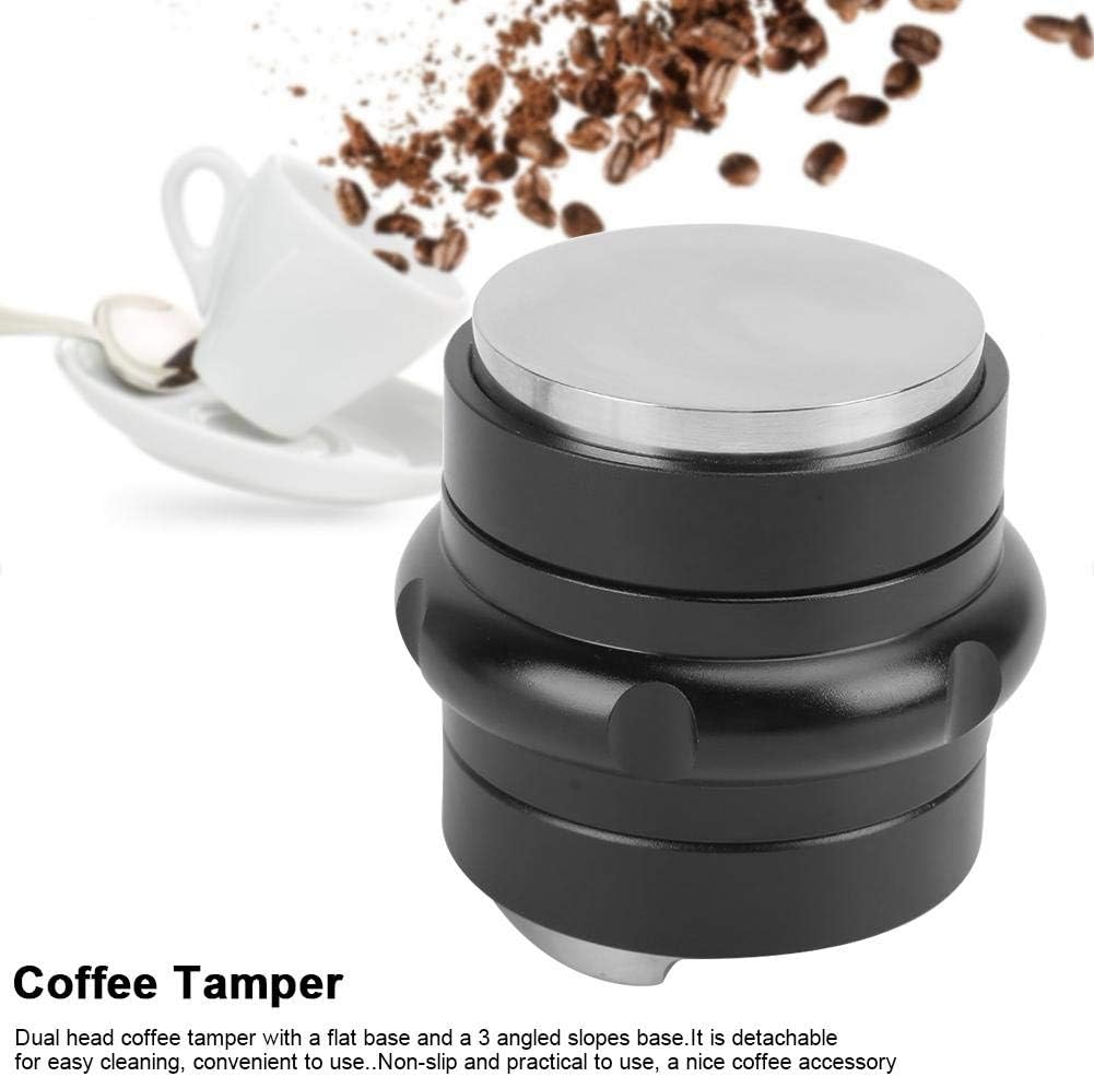 Feature: 1. The stainless steel coffee tamper is detachable for , convenient to use. 2. It can press the coffee powder firmly and reduce the unnecessary waste of the coffee powder. 3. Dual coffee tamper with a flat base and a 3 angled slopes base, and the height is adjustable, easy to use according to your needs. 4. treatment and mirror polishing process with fine grinding, improve anti-slip efficiency. 5. The part between the tamper and the powder bowl is made of stainless steel, which greatly reduces the friction during rotation and reduces noise. Specification: Condition: Brand New Item Type: Coffee Tamper Material: Stainless Steel Color: Black Tamping Type: Flat Base + 3 Angled Slopes Base Tamping Diameter: Approx. 5.8cm / 2.3in Weight: Approx. 405g / 14.3oz Package List: 1 x Coffee Tamper Note: 1. Please allow 1-2 mm error due to manual measurement. Thanks for your understanding. 2. Monitors are not calibrated same, item color displayed in photos may be showing slightly different from the real object. Please take the real one as standard.