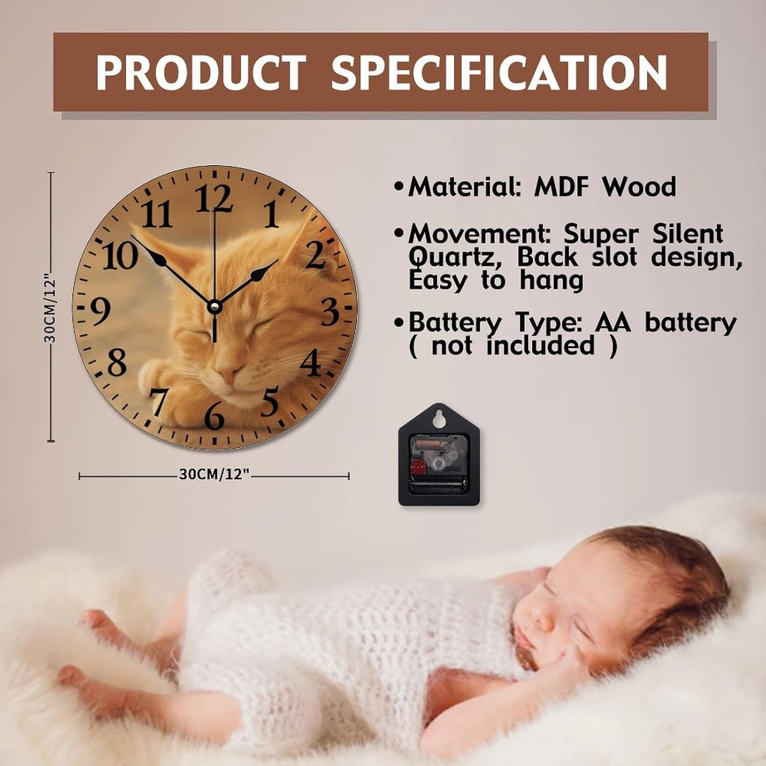 Material And Size:This wall clock is made of high-quality wood and has a diameter of 12x12 in. This stylish and simple design can be used not only for timing, but also for decorating rooms and displaying elegant work of art. Silent Non-Ticking: This non ticking silent wall clock ensures the accuracy of time and silence. It is suitable for bedrooms, kitchens, conference rooms and any other places where silence is required.Vintage Rustic Dial: Vintage clock is perfect for living room, bedroom, kitchen, office, cafe, restaurant, bar or hotel decor, and easy to read.Privately Customized Artwork:Choose the pattern or letter you want, and we will print it perfectly for you. If you have customized needs, Please send us the Custom information within 24 hours. If we do not receive your customized information within 24 hours, the product will be regarded as the default style of the picture.Customers First:This wall clock is specially designed for customers. It's easy to hang. Customers can buy it at ease. We are confident in the quality of this wooden wall clock. If you have any questions after purchase, please feel free to contact us. We will provide you with satisfactory after-sales service.