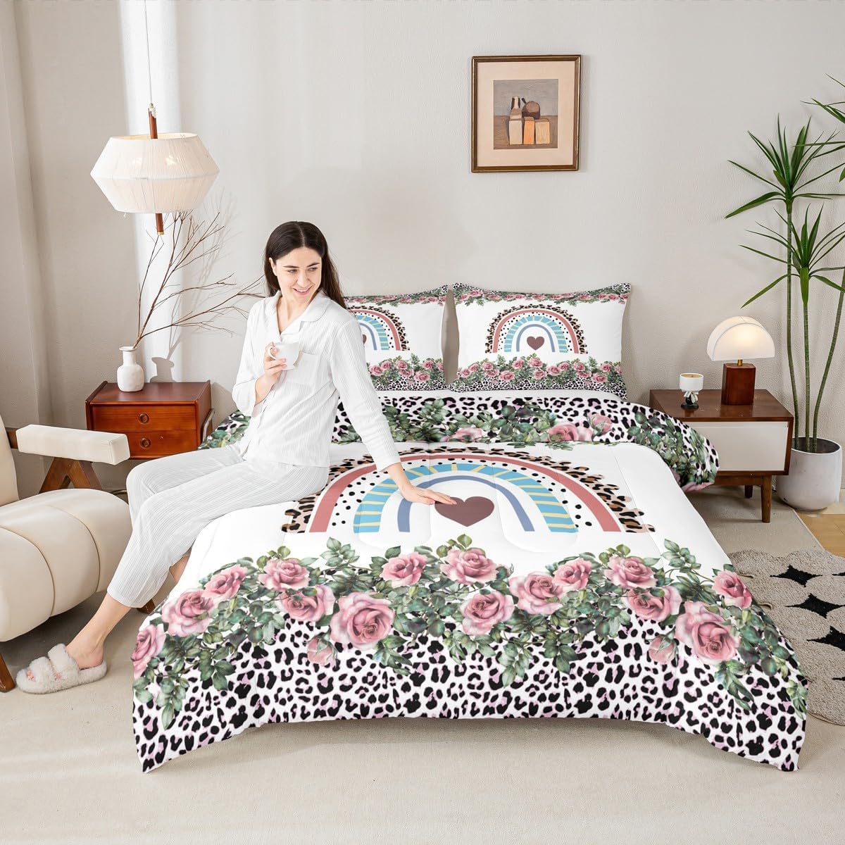 Package Include: Comforter and Pillowcase. Makeover your bedrooms every season with our Comforter sets. Perfect item for your room, girls boys youth room, master bedroom. Size Information: Twin size down comforter 68"W x 90"L and 1 pillow case 30"W x 20"L. 2pcs with 1 Bed Comforter and 1 Pillowcases in A Bag Full size down comforter 79"W x 90"L and 2 pillow cases 30"W x 20"L. 3pcs with 1 Bed Comforter and 2 Pillowcases in A Bag Queen size down comforter 90"W x 90"L and 2 pillow cases 30"W x 20"L. 3pcs with 1 Bed Comforter and 2 Pillowcases in A Bag King size down comforter 104"W x 90"L and 2 pillow cases 36"W x 20"L. 3pcs with 1 Bed Comforter and 2 Pillowcases in A Bag Useful and practical A luxurious product for homes, dorm rooms, hotels, guest rooms. Practical to use for being polyester, feels like cotton which is Super Soft and Breathable. No chemicals used, No dye substance harming the health of you or your family. Unique design: Vivid Colors won't fade thanks to new 3D digital printing methods. These unique designs match well with various color palettes of your rugs, curtains, headboard, furniture, and all other decor accessories. Personalized: As manufacturers of digital printed home textiles, we follow current trends and bring you the latest home fashion. More Decor: Search our store to get more christmas theme, new year theme, autumn fall theme, any holiday theme, modern abstract, farmhouse rustic theme, simple pattern, garden flowers etc. home decoration. Warm Tips: 1. Please allow 1-3cm error due to manual measurement. 2. Actual color may vary from the color on your screen due to monitor color restrictions.
