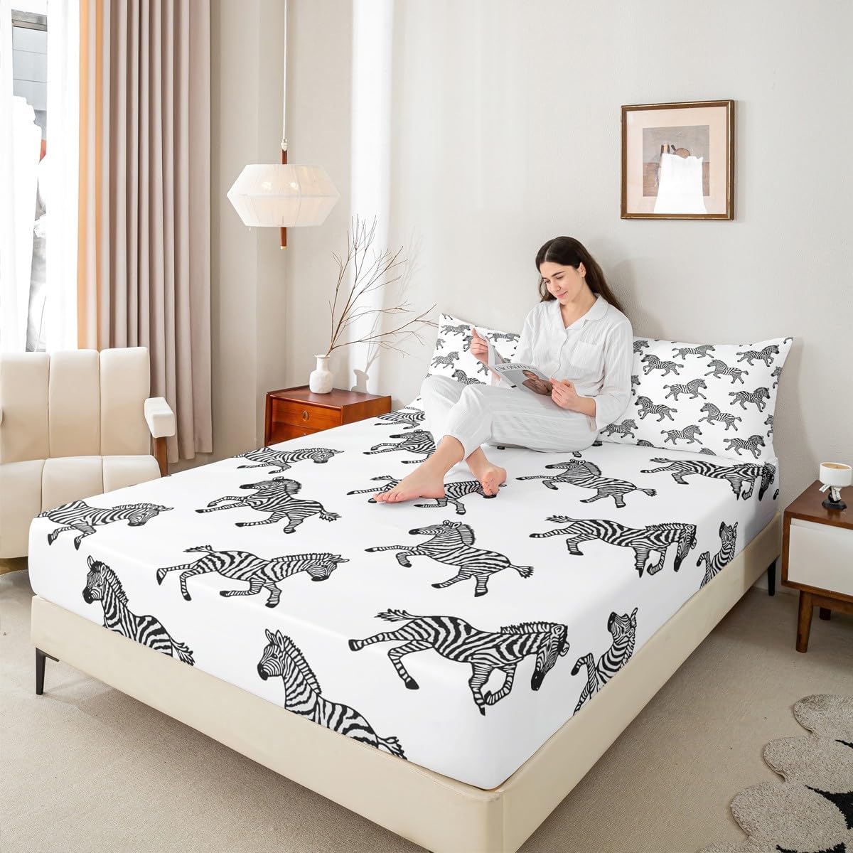 I: Package Include 1 Fitted Sheet and 1 Pillowcase. The Modern Fitted Sheet Set Pattern Bedding Set,Simply Decorating Your Rooms Any Time You Want,Bringing You Fresh Feel for Year Round Use. Long Lasting Made From Polyester Microfiber II: Size Information Twin Size: 2Pcs Fitted Sheet Set:1 Fitted Sheet 39"Wx75"Lx16"H(99x190x41cm), 1 Pillowcase 20"x30"(51X75cm). Full Size: 3Pcs Fitted Sheet Set:1 Fitted Sheet 54"Wx75"Lx16"H(137x191x41cm), 2 Pillowcase 20"x30"(51x75cm). Queen Size: 3Pcs Fitted Sheet Set:1 Fitted Sheet 60"Wx80"Lx16"H(152x203x41cm), 2 Pillowcase 20"x30"(51x75cm). III: Personalize Your Bedroom Beautiful Design and Colorful Print,Makes Your Bedroom Unique and Brings You a Wonderful Dream. IV: Washing Instructions Machine Wash Separately In Cold Water,Hang Dry,Do Not Bleach. V: Occasion The Soft Fitted Sheet Bedding Sets Designed for Children,Adult,Men,Women,Teens.This Fitted Sheet Set Is Also Suitable for Full Seasons,Spring,Summer,Autumn and Winter. It Also Can Be Used As a present for Your Family and Friends.Such As Halloween,Moms and Dads,Valentine's,Mother's Day,Father's Day,Christmas. Will Be Love It:)