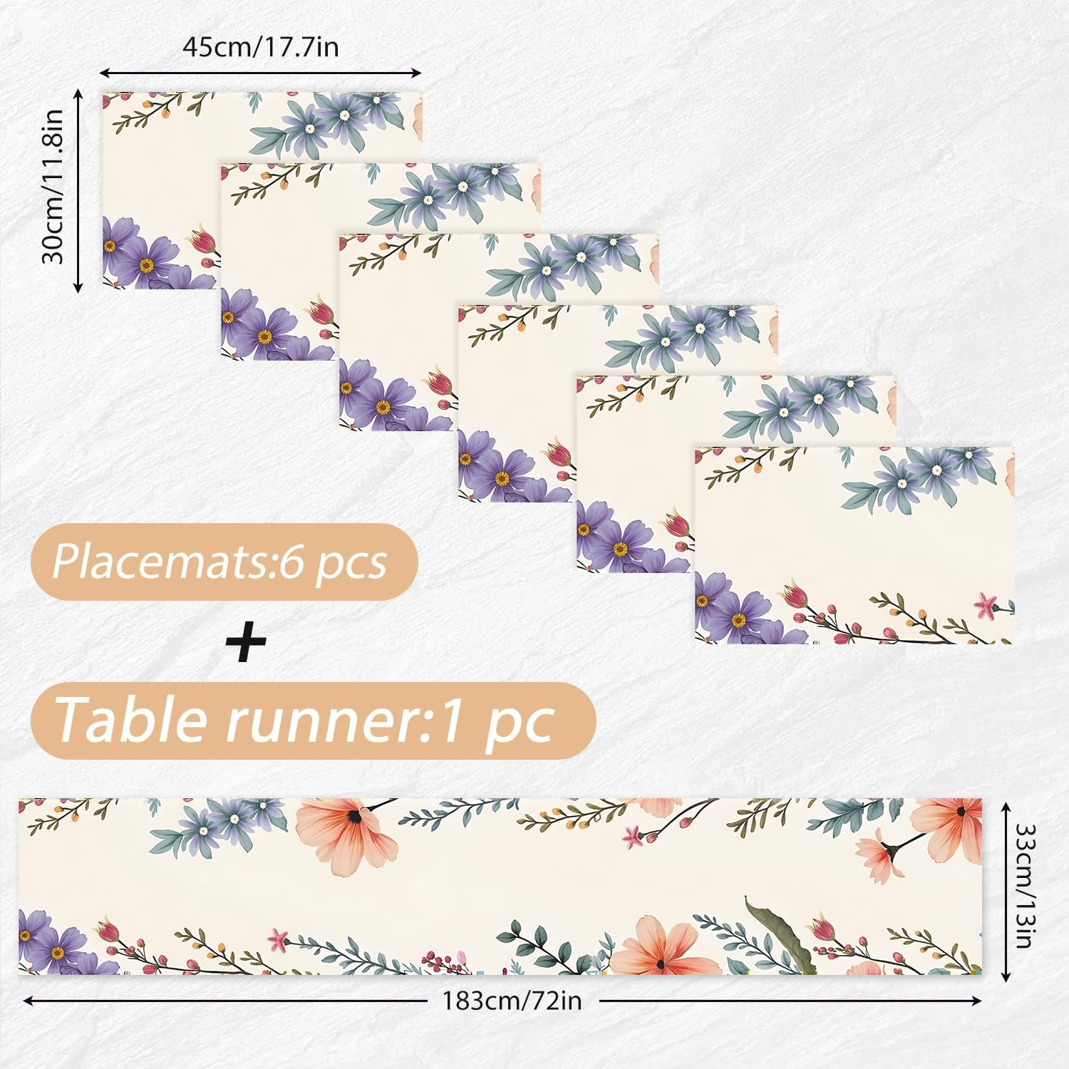 | Size | 13"x72" table runner+12"x18" placemat 6pcs |