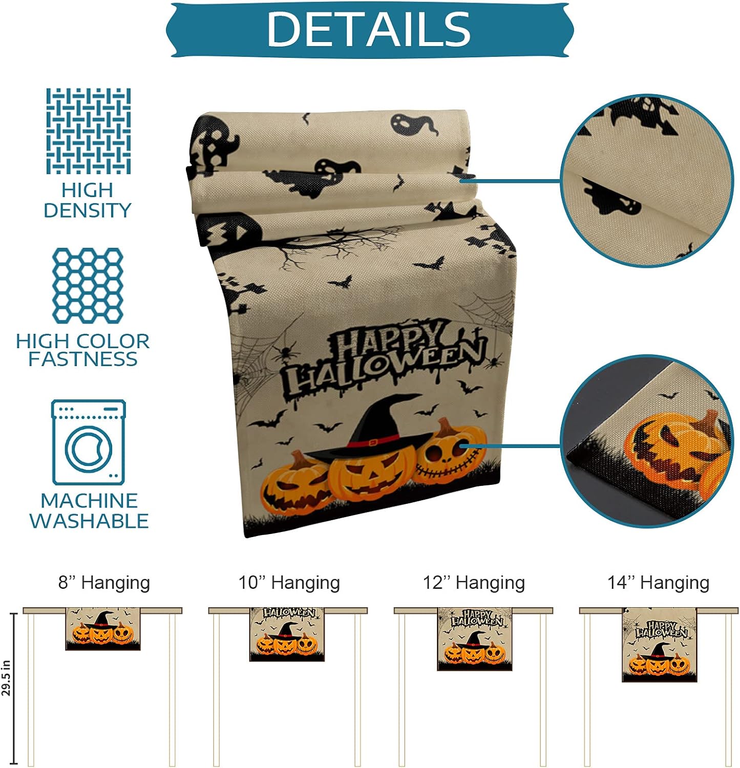Specification: Material: 100% Poly-cotton Linen Size: 13 X 70 inches/13 X 90 inches/14 X 72 inches/16 X 72 inches/18 X 72 inches/13 X 108 inches/13 X 120 inches Machine Washable. Multifunctional Table Runner 1.Fully Stitched & Hemmed:Paying attention to small details, fine workmanship, it is sewn on all four sides. The edges of the decorative table runner are all fully stitched and hemmed that assures the durability of daily use. 2.Widely Application of Use:Perfect for everyday use, holidays, catering, special occasions, dinners, brunches, family gatherings, country weddings, and more. Great for entryway tables, dinner table, coffee table, book desk, storage table, picnic table, patio, or other surfaces of your home, you will love it once you use it. 3.Perfect table decoration:It's a natural and rustic feel table runner, light weight, easy to carry and reusable. Fit rustic, woodland, vintage, country wedding decoration, boho style, farmhouse table decoration. 4.Ideal for farmhouse, home, living room, dining room, kitchen, garden, etc. Bring you a minimalist feeling, also gives your table a new look. 5.As the table runner is handmade, the size may vary slightly (within 1-2 inches).
