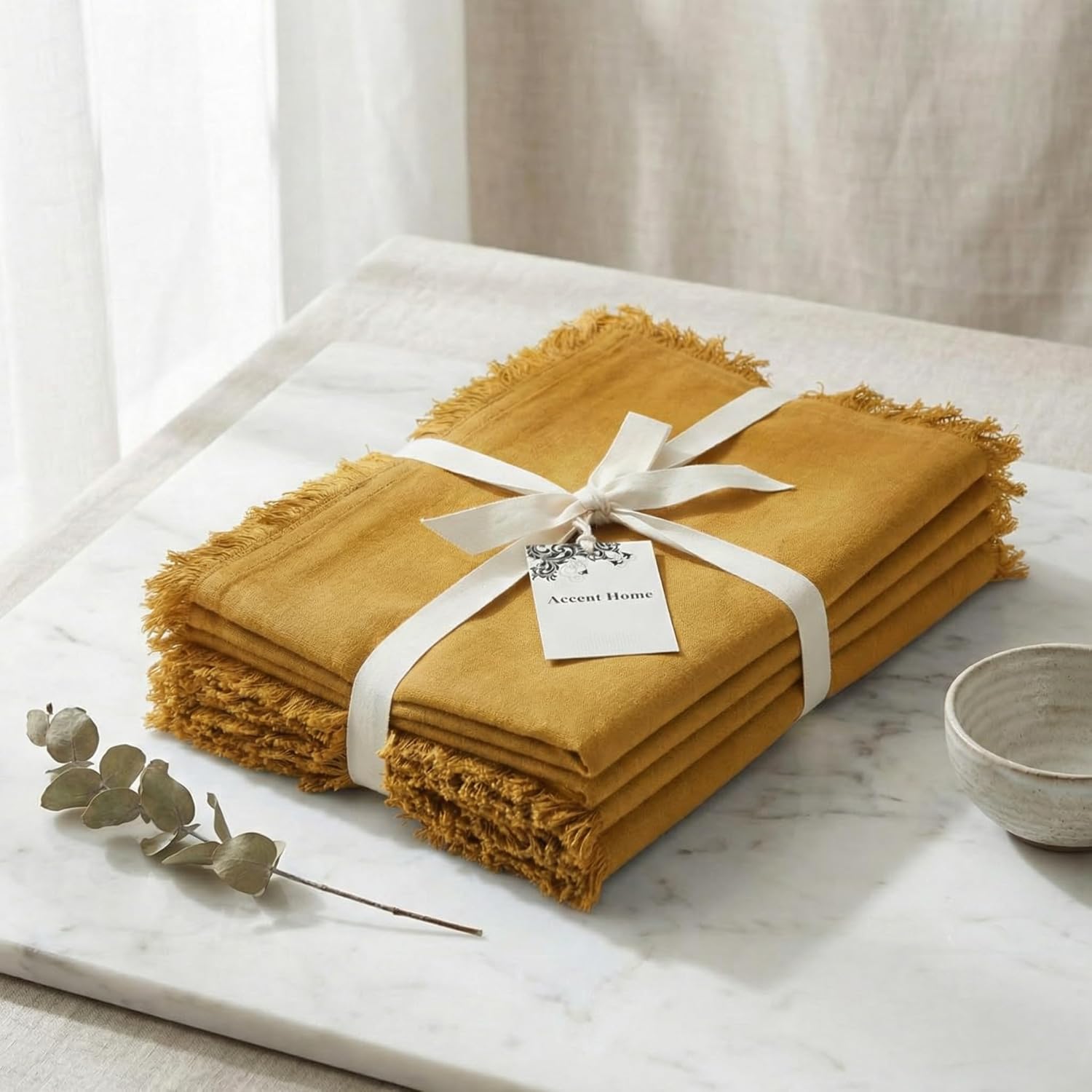 Accent Home Mustard 13 x 120 Inches Cotton-Linen Table Runner – Soft, Durable & Natural Blend Rustic Farmhouse Style for Dining Table, Weddings Bridal Shower Thanksgiving Christmas & Everyday Use