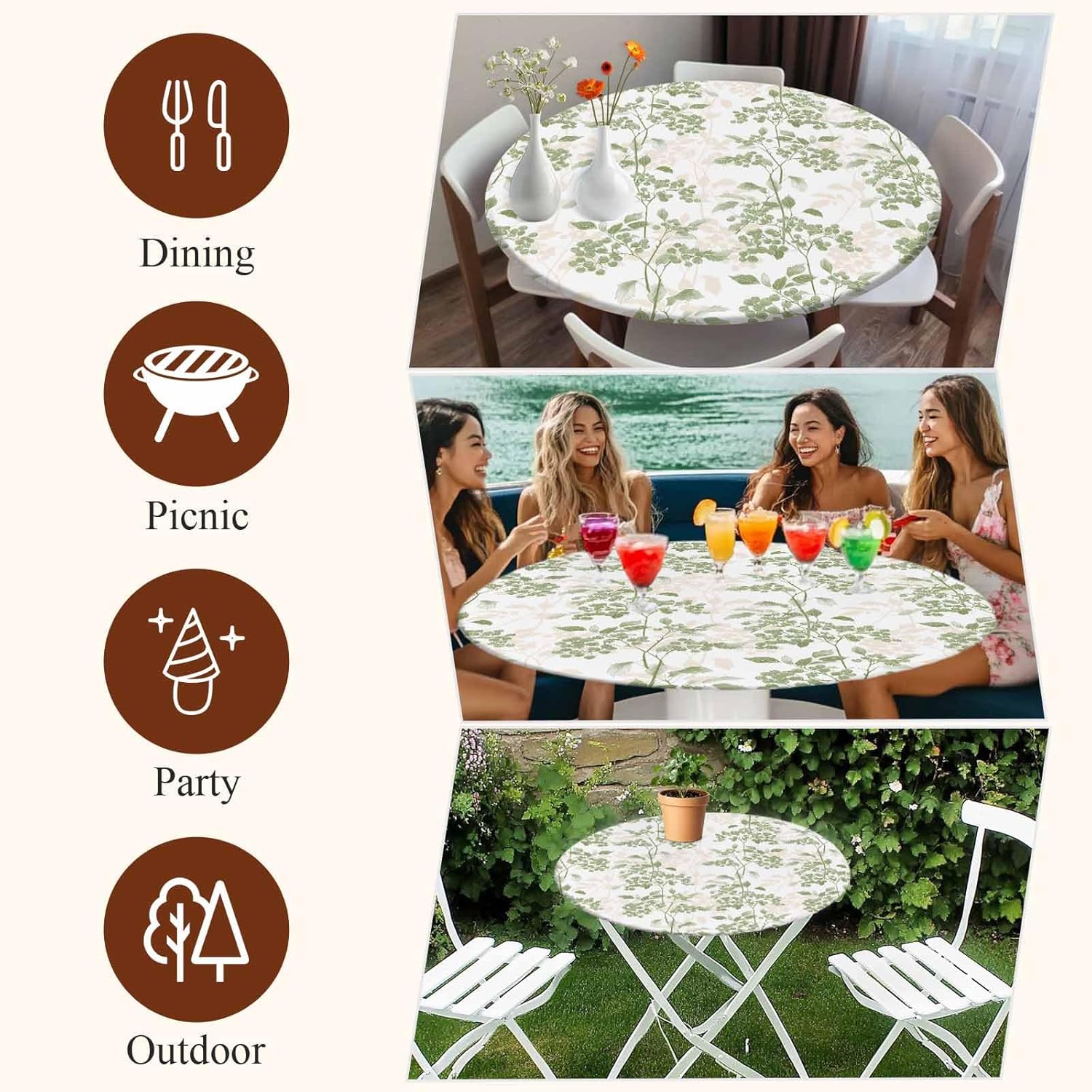 Table Cloth Round – Elastic, Waterproof, Durability, and Stylish – Perfect for Indoor, Outdoor, Dining, Picnic and Wedding Upgrade your dining experience with our premium patio table cover, designed to combine functionality, durability, and style. Whether family dinner, celebrating special occasions, or enjoying outdoor gatherings, the round vinyl tablecloth provide superior protection and effortless elegance. Why Choose Our Circle Tablecloth Enhanced Protection for Your Table: Designed to protect against common table damage, such as spills, scratches, and heat marks, Outdoor table cover provide an advanced layer of defense. Whether it’s a hot serving dish or a spilled drink, you can rely on the colorful tablecloth to safeguard your table effortlessly. Round Fitted Tablecloth with Elastic: Say goodbye to party tablecloth that constantly shift or require clips to stay in place. Our dining table cover protector features elastic edge design that ensures a snug fit, perfectly tailored for round tables. Various Theme Tablecloth: Our table cloths for round tables are available in styles, including gingham table cloth, coffee table cover, wedding table cloths, baby shower tablecloth, Summer table cloth, summer tablecloth, fall table cloth cover, winter table cloth. Add a touch of elegance to your home, outdoor events, or formal gatherings with this decorative table cover. Specifications: Material: polyester fabric Sizes: 44 inch, 54 inch, 60 inch Perfect Gift: Birthday, Housewarming, Valentine's Day, Easter, St. Patrick's Day, Independence Day or special events. Wipeable Tablecloth: Wipe clean with a damp cloth or machine wash on gentle settings; do not bleach or iron Enhance your dining table with table cloth round cover that style, durability, and functionality. Whether for daily use or special events, transform your table into elegance and convenience.