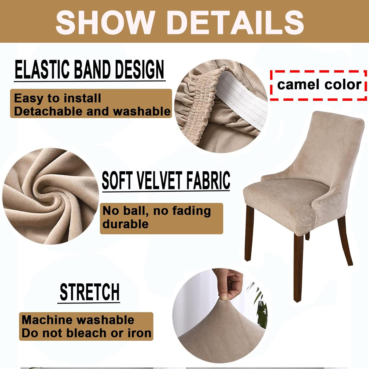 ---Does the ordinary chair cover not fit? ---Are you looking for "Curved Armchair Cover"? ---Do you still use your old chair every day?✔ low cost restaurant stretch velvet wingback chair covers with arms can refresh your old chairs, give your new chair full protection, extend the life of the chairs and help you save money✔ It can give your old or ugly wingback chair a fresh look. Protect your wingback chair from scratchesand damage.Very easy to install and remove ✿ CHAIR COVER SIZESeat length : 18-22"(46-56cm), Seat width: 20-24"(51-61cm), Back height: 22-26"(56-66cm), Back width: 18-21"(46-54cm), Seat thickness: 4-7"(10-18cm), Wing height: 8-12"(20-30cm).●●Please check the size of your chair before ordering✿ MATERIAL: velvet ▶ COLOR: solid color▶NAME:Curved Armchair chair cover▶PACKAGE INCLUDES: 1pcs/2 pcs /4 pcs/6pcs × chair cover (not including chair)✔Washing instructions : 1. machine-washed, 2. cold water wash, 3. cannot ironing, 4. cannot dry cleaned, 5. cannot bleached.✿PLEASE NOTE1. Due to manual measurement, the difference is 1-3 cm2. Please note that due to the influence of light and screen, there may be slight chromatic aberration.