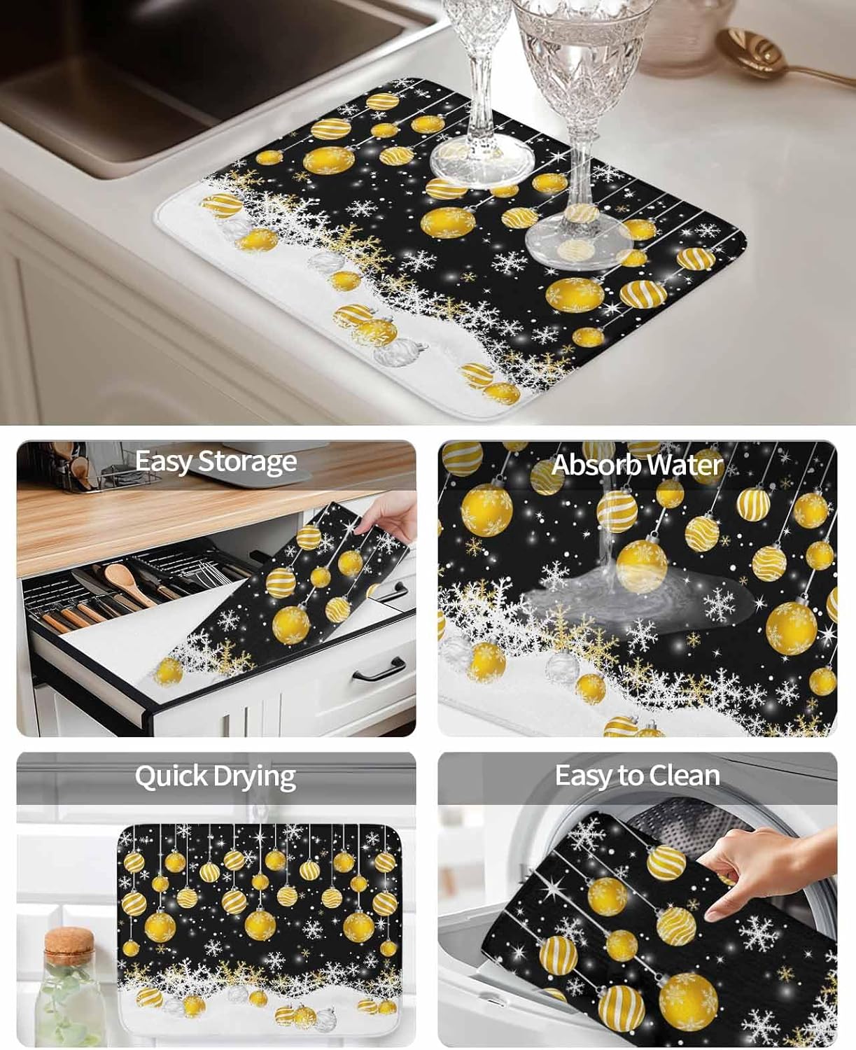 Are you tired of messy kitchen countertops?Are you worried about spilling water all over the place after every wash?Can't find a suitable place to put washed green fruits and vegetables?Our dish drying mats are designed to solve your kitchen problems. It is absorbent, heat insulated, breathable, soft to the touch, easy to clean and store, giving you a clean and tidy countertop. So when you come home from a long day at work, you'll feel refreshed.Material:The surface of dish mat is made of polyester, and mesh bottom. The middle is a thick sponge which is highly absorbent. It can absorbs up to 3 times its weight in water to keep your counters dry.Quick Drying & Storage:The dish drying mat dries quickly, so once your dishes or cookware are complete dry, they can be folded up and stored in any drawer, cabinet, or closet. Or it can be hung without taking up any space.Multipurpose:Our kitchen drying pads are printed on one side, but can be used on both sides. Soft and foldable. It can be used as a protective pad to protect the countertop, tableware. Can be used as placemats, coffee maker mats, shoes mat.