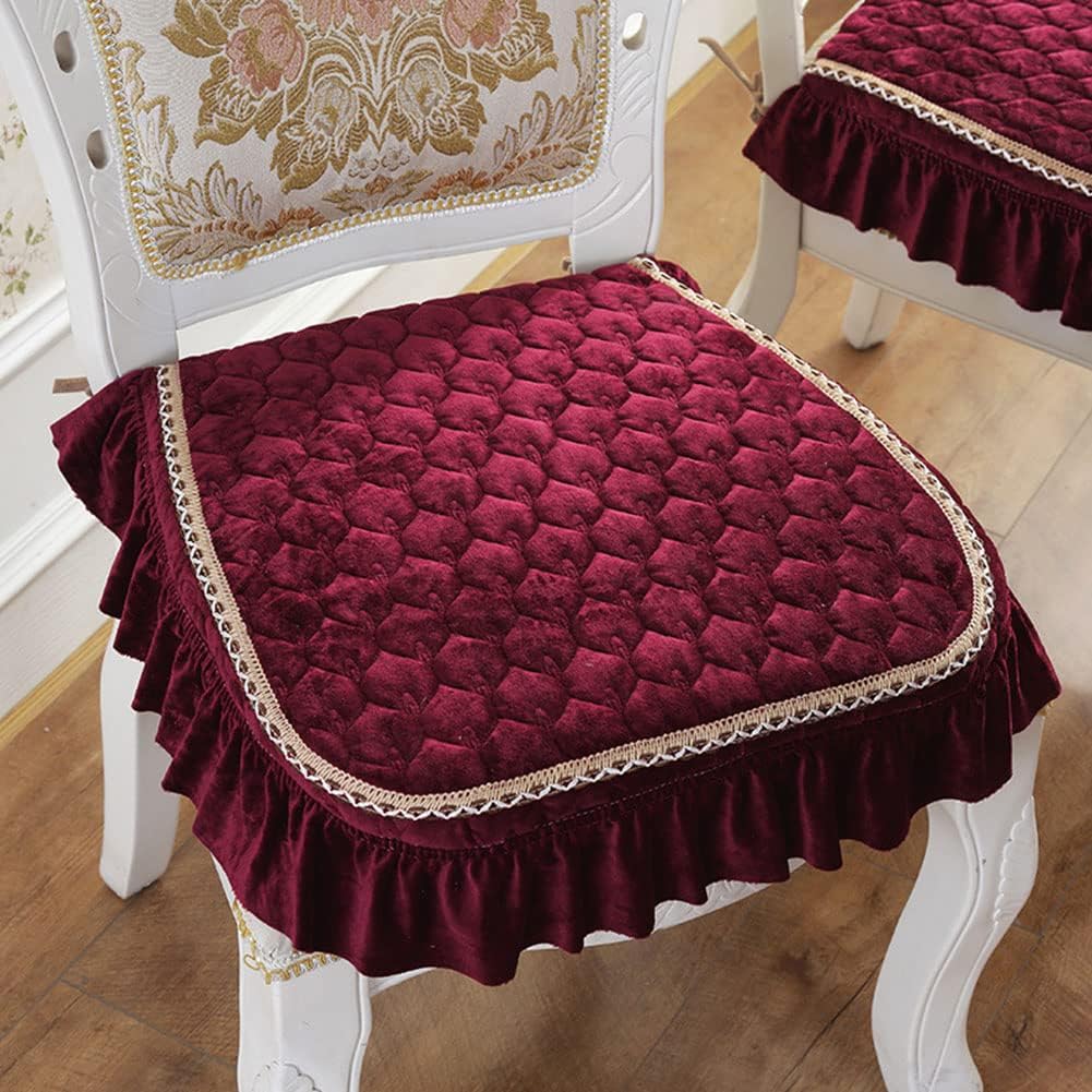 Our kitchen chair cushions are perfect for your dining room! These colorful and practical dining chair cushions will enhance your dining experience.FeaturesSoft Fabric: Comfortable, skin-friendly, moisture-absorbing, breathable, wrinkle-resistant, and stain-resistant.Secure Design: Each cushion comes with two ties and a non-slip bottom to ensure they stay in place.Elegant Design: Beautiful chair cushions with a luxurious and elegant design, lace trim, perfect for decorating the kitchen, living room, or couch.Easy to Clean: Removable and machine washable cover for effortless cleaning.Product DescriptionMaterial: Plush fabricFilling: Hard cottonSize: 43x45cm / 16.9x17.7 inchesType: Seat Cushion/Back CushionShape: SquareSuitable for: Pub, Club, Bistro, Patio, Garden, Dining, Kitchen, HomePackage Includes:2/4/6 x Chair CushionsWarm Notes:Only cushion, chair not included.Due to manual measurement, please allow a slight deviation of 1-2 cm.
