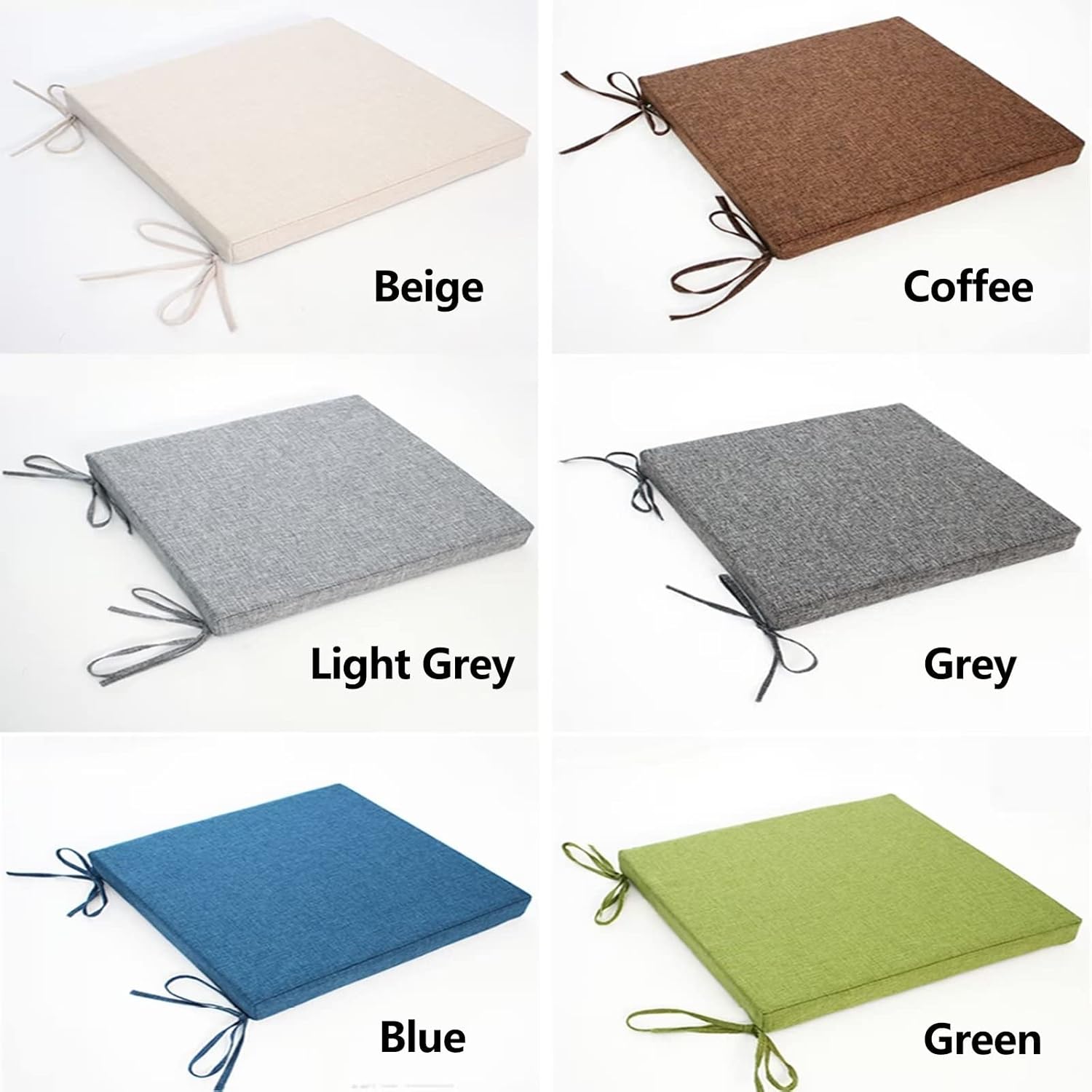 Our kitchen chair cushions is perfect for your dining room! These colorful and practical dining chair cushions will bring you a beautiful dining time! HIGHLIGHTS: 1. Filled with new high density sponge, which is a upgraded material, more resistant to deformation. Soft and comfortable, anti-deformation, allowing you to sit for a long time without burden. 2. Different thickness available, 3cm, 5cm, 8cm different thickness to meet your different demand, it is just like a personal customization. 3. With non slip design, this seat cushions for kitchen chairs with two ties, Tie the cushion to the chair's leg or back, cushion will not slide down. 4. Cotton and linen fabric, breathable and skin-friendly, environmental natural dyeing processing, machine washable and you will never worry about it fading. 5.Colorful and decorative, it will bring you a good mood when you see it. Tie is long enough to fit all most shape of the chairs. Specification: Cover Fabric: cotton and linen Dimension: 40x40cm/16x16in Available Thickness: 3cm/1.4in, 5cm/2in, 8cm/3.2in Color: Beige, Brown, Dark Grey, Navy Blue, Green, Grey, Orange, Yellow Warm Note: 1. Due to manual measure, please allow a slight measurement deviation of 1-2cm. 2. Please kindly note product will arrive in a slightly compressed state; please allow a few days for product to expand to final size listed in description