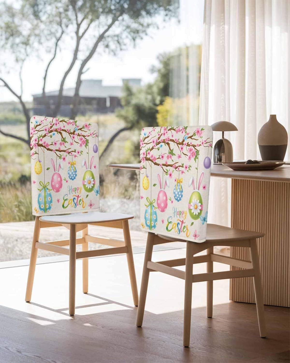 Are you still upset that the chair is a little damaged?We provides you with comfortable home chair decoration, creating a comfortable and warm living atmosphere.Made of high stretch polyester and spandex fabric,smooth and comfy, this dining chair back cover is to look and wear. And there are various styles or patterns of chair covers for your choice, practical for your home decor.Removable protective armless chair slipcover is perfect for homes with kids, dogs and cats, allowing it to perfectly combine style and durability, add new life to your chairs. It also protects your chair from fur,stains,scratches and even oil spills.The chair slipcovers have excellent elasticity, soft and long-lasting durability, comfortable and wrinkle resistant. Whether you need chair covers for party, family dinner or even a change of season, we have multiple styles to choose. Therefore, it also a warm party holiday gift for your family or friends, such as Thanksgiving Christmas and so on.It will be very convenient to install the matching size.Don't use chlorine bleach, wash dark colors separately, low with steam. And please kindly measure your chair before ordering.If any question about the item,please email us.