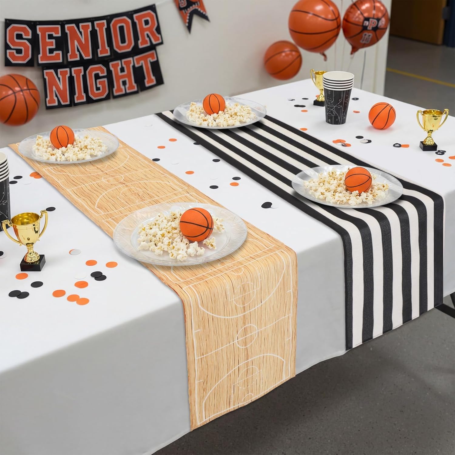 Features: Basketball Party Atmosphere: Each table runner incorporates unique basketball elements (such as basketball graphics and court lines), instantly creating a lively and harmonious atmosphere. It is ideal for sports themed parties, basketball events, or fan gatherings. Use Versatile: Add a vibrant basketball atmosphere to your kitchen or dining room while protecting your tabletop from scratches and spills. Suitable for basketball themed birthday parties, sports banquets, team celebrations, and casual fan gatherings. Specifications: Material: linen material Color: multicolor Size: about 13 x 72 inches Package includes: 4 x Basketball table runner Notes: Manual measurement, please allow slight errors on size. The color may exist a slight difference due to different screen displays
