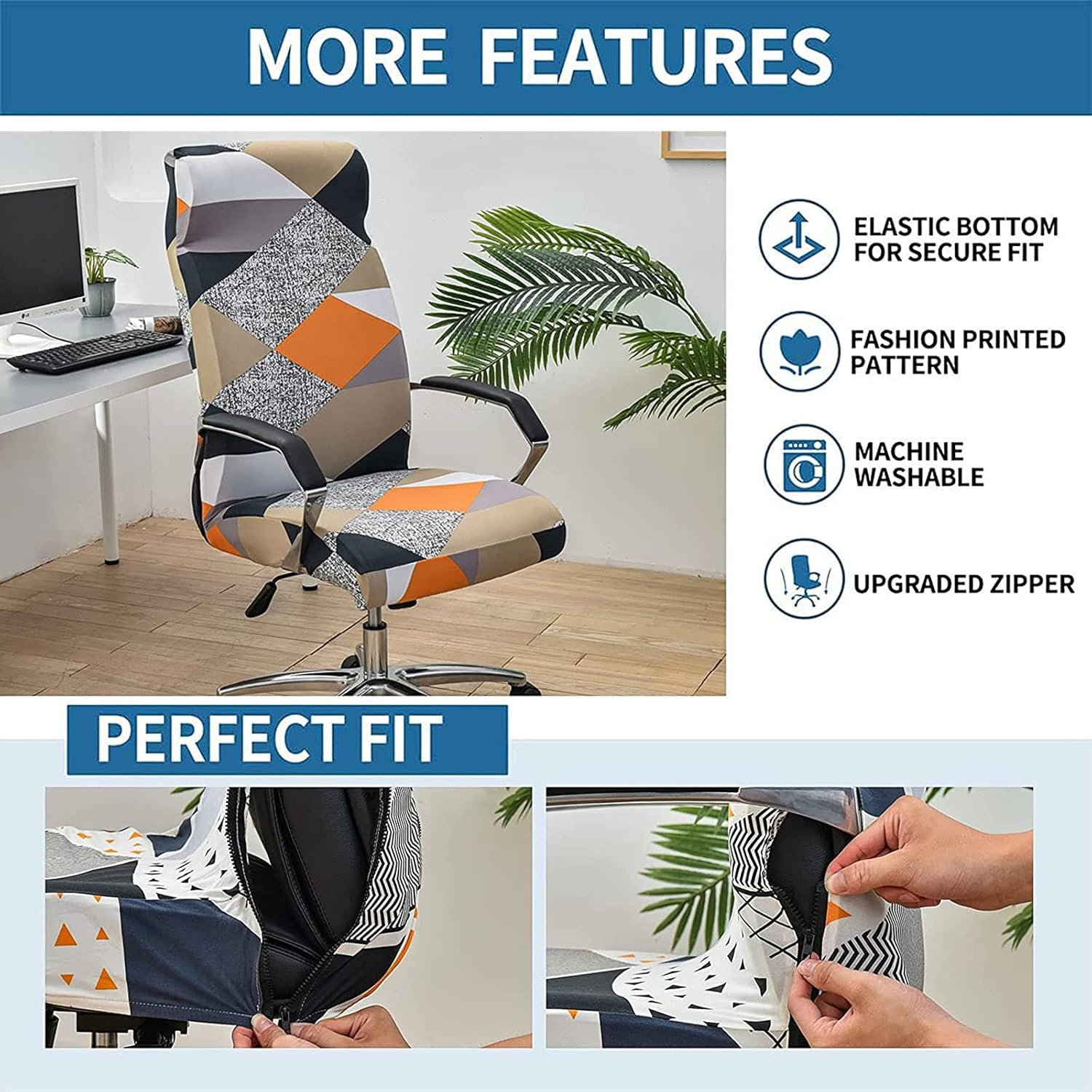 JHLD Office Computer Chair SlipcoversStylish & simple, bring a new style to your chairs and transforms your old chairs into new looking.Protect your chair from stains, spills, wear and scratch, great for family with kids and pets.Easy InstallZippers are designed on both chair back sides for facilitate fixation and using.Stretchable & Non-slipExcellent elastictiy material, recovers quickly, secure fit with sewn-in elastic hem.Ideal Fit Your ChairDesigned with high elasticity to perfectly fits most office chairs.Easy CareMachine washable in cold water. Wash separately at gentle cycle. Using mild laundry detergent. Do not bleach.PLEASE NOTE:The package only includes the chair cover, not the chair.Please examine the chair you need covers for to determine which style it is.Due to different computer/screen displays, the color of the product may be a bit different from the picture. And because we are making our products by hand, there may be a deviation of about 2 cm.If you have any questions, please contact us, we are committed to providing you with satisfaction after-sales service.