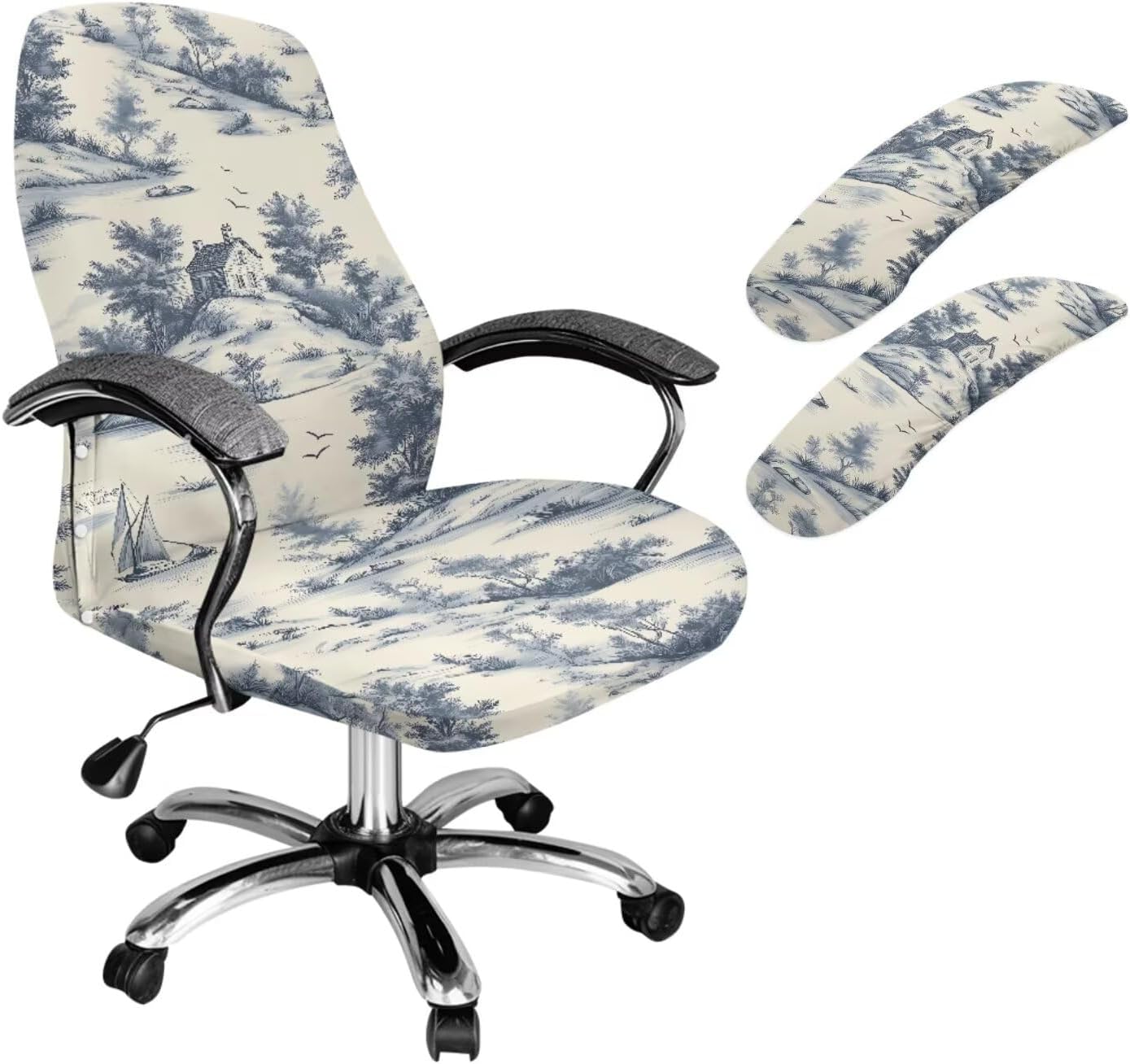 Enhance your workspace with our Office Chair Covers Set, a perfect blend of style, comfort, and protection. This versatile set includes a universal seat cover and a pair of armrest covers, designed to refresh the look of your office chair. It’s ideal for home offices or as a thoughtful gift for friends and family, making it a practical addition to any work environment. Designed for a perfect fit, our chair covers come in two sizes to accommodate a range of chairs. The Small size fits backrest widths of 14.9-21.6 inches and heights of 22.8-26.7 inches, while the Large size caters to backrest widths of 17.7-22.8 inches and heights of 27.5-31.5 inches. Both sizes ensure a snug and secure fit, making them suitable for high-back office chairs. Armrest covers measure 9.2-15 inches in length and 3.7-4.7 inches in width. Crafted from a premium blend of polyester and spandex, these desk chair covers are soft, breathable, and durable. The elastic material easily stretches for a perfect fit and is removable and washable, ensuring long-lasting use and easy maintenance for your busy lifestyle. Installation is effortless with built-in elastic bands and a convenient snap button design. The covers stay securely in place, eliminating the need for constant readjustments when you get up from your chair. Enjoy hassle-free comfort every day! Not only do these computer chair covers protect your chair from dust, pet scratches, and stains, but they also add a touch of elegance to your workspace. Available in a variety of colors and patterns, our covers breathe new life into old chairs and elevate your office decor.