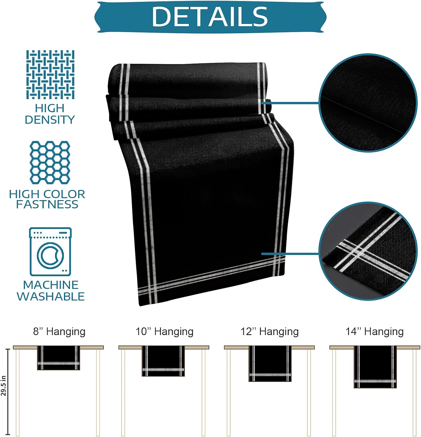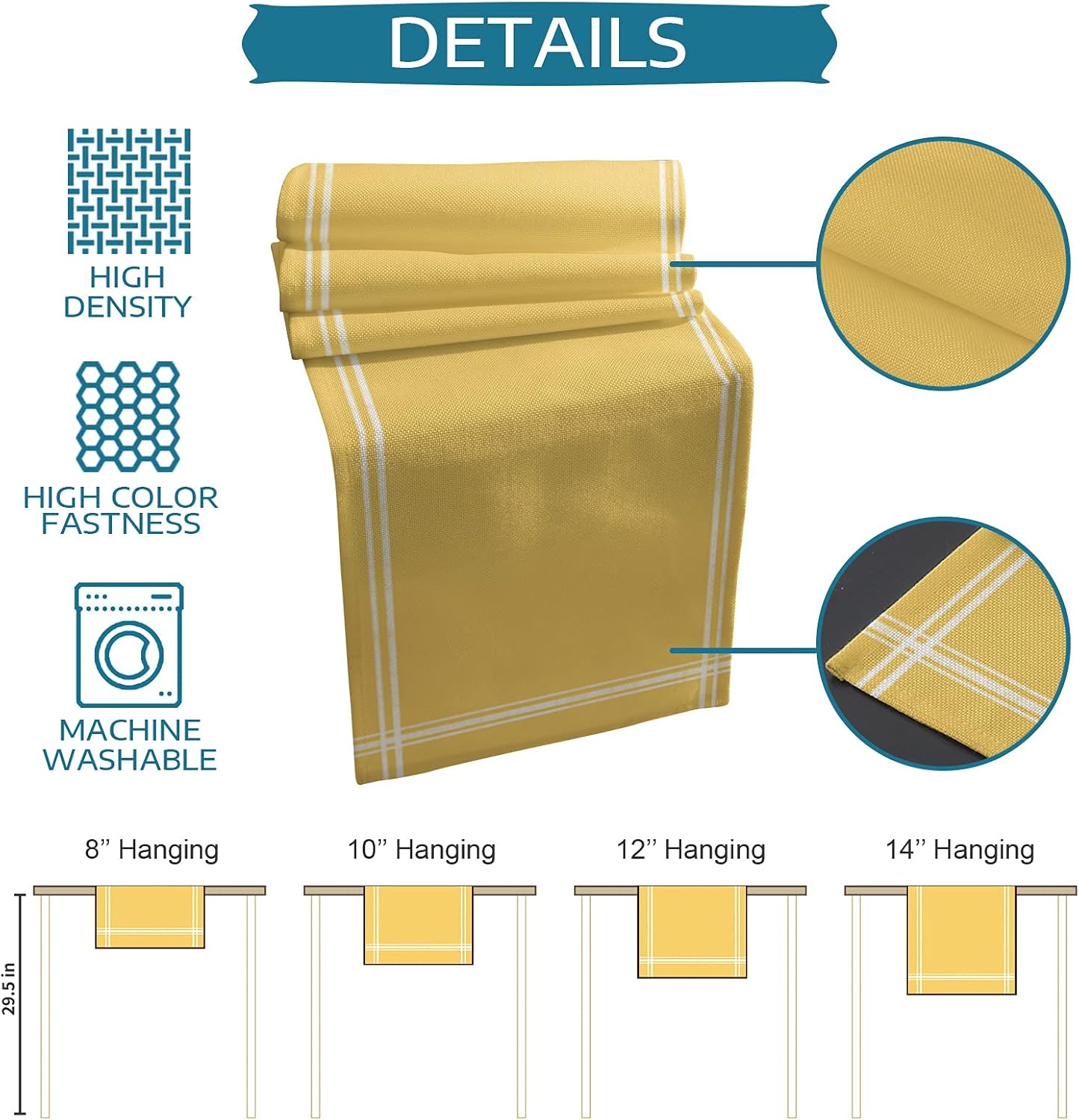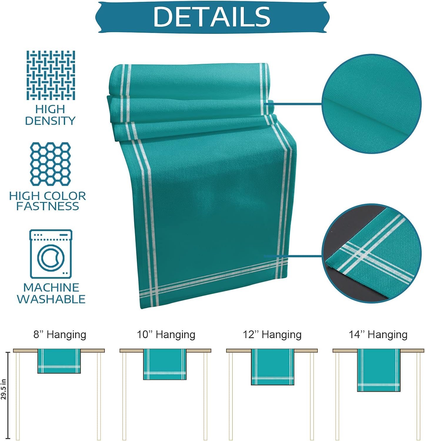 🌋Wide Uses:Table runner is indispensable in daily life,it is a perfect table decoration for your room,include entryway table,dinner table,kitchen table,TV stand,cabinet,coffee table,storage table,dressers etc.And also perfect for various outdoor occasions and holiday dinners,such as farmhouse,barn,wedding,theme party,picnic,BBQ,cafe,birthday,Mother's Day,Thanksgiving,Christmas,Halloween and so on.You will fall in love with our modern table runner,it can provide extra charm for table decor.🌋Main Features:Modern classic design texture,quality durable polyester fabric,fine and strong workmanship,perfect suitable size,our table runner helps to create a pretty and relaxing space,let you enjoy every meal cheerful.Table runner adopt the quality and durable polyester fabric,eco-friendly,non slip,anti wear,anti stain,well protect your beloved dinner table.Simple and unique design patterns are perfectly matched with bright and vivid colors to add a stylish and exquisite style to any rectangle table setting,create a beautiful and tasteful dining environment.Easy to clean,just machine wash in cold water,gentle cycle.🌋Detailed Size Chart:13x70inch(33x178cm)13x90inch(33x229cm)14x72inch(36x183cm)16x72inch(41x183cm)18x72inch(46x183cm)13x108inch(33x274cm)13x120inch(33x304cm)13x36inch(33x91cm)13x72inch(33x183cm)💕Warm Notice:Due to the different diaplays and light effects,the actual true color of the table runner may be slightly deviated.If you receive a table runner with wrinkles,don't worry,just lightly iron it,the wrinkles will disappear and leaving you with a flat table runner.If you have any questions about our table runner,please contact me at any time,we will do our best to provide you with satisfactory service.
