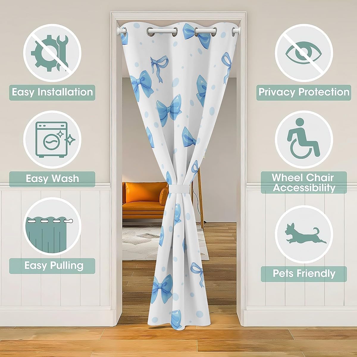 Package Include: doorway curtain privacy 80 inch 84 inch insulated thermal room darkening blackout curtains for bedroom 1 panel Made from 100% polyester microfiber Size information:34"x80"42"x80"52"x80"59"x80"42"x84"52"x84"this doorway curtain can be door divider curtains which hang between two home space are providing privacy in bedroom and living room, also blocking smell from kitchen, darkening the room or even used as a closet curtain to hide bathroom shelves;2as window curtain panels, this curtain is suitable for the living room,bedroom, kitchen, guest room, kid's room, vacation home, front doors, patio door, front porch, pergola, cabana, covered patio; with eye catching design, it makes a bold statement in every room and space it covers Occasion:the cute home furniture decoration trendy door curtain designed for children ,adult, men, women, teens; this window treatment sets is also suitable for all seasons