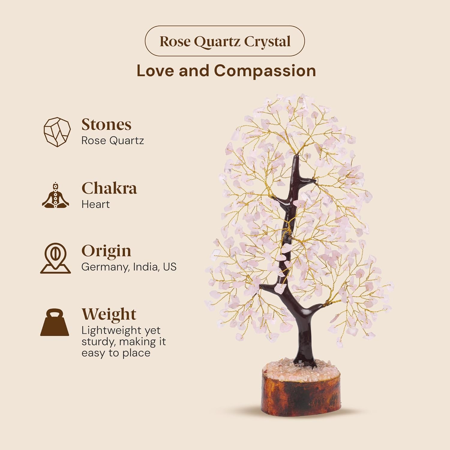 | Material Type | Wood, Golden color wires, Rose Quartz Gemstone chips |