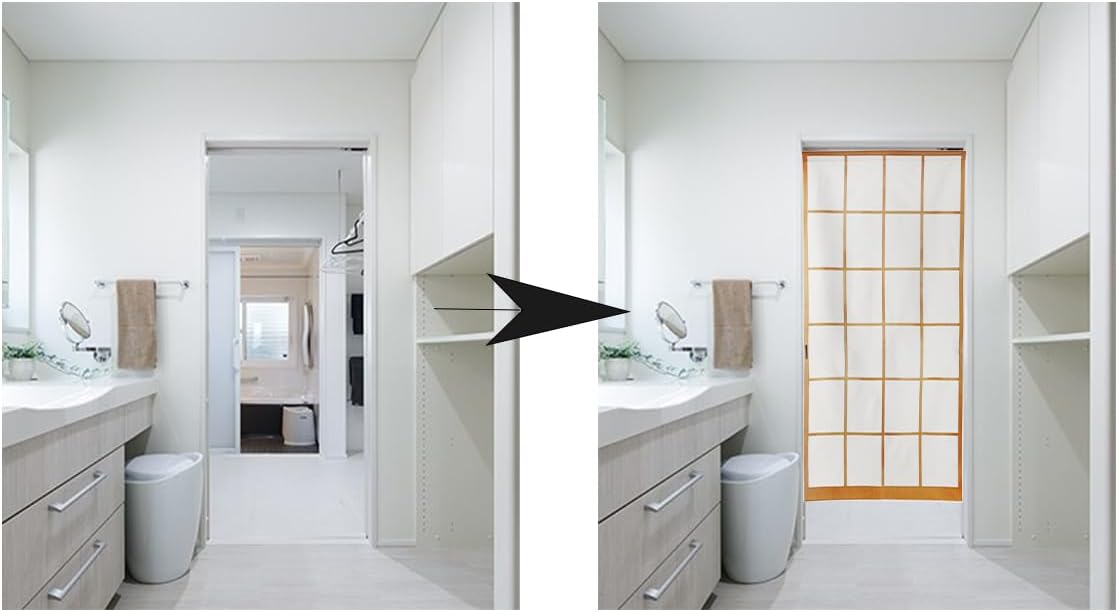 Interesting noren with a picture of Japanese Shoji printed on it.pattern printed only on one side. [Size] Width approx. 33.4 inches x height approx. 70.7 inches [Main material] Polyester fiber [Installation method] Can be installed by passing a tension rod through the top of the curtain. (*Tension rod is not included in the product.)