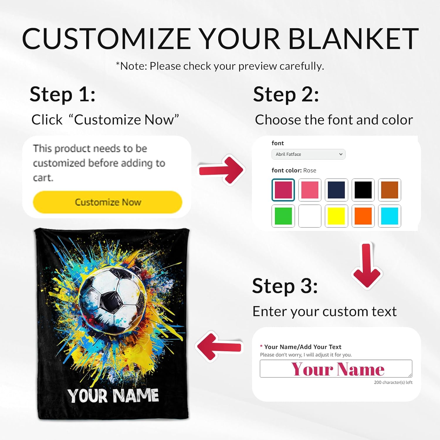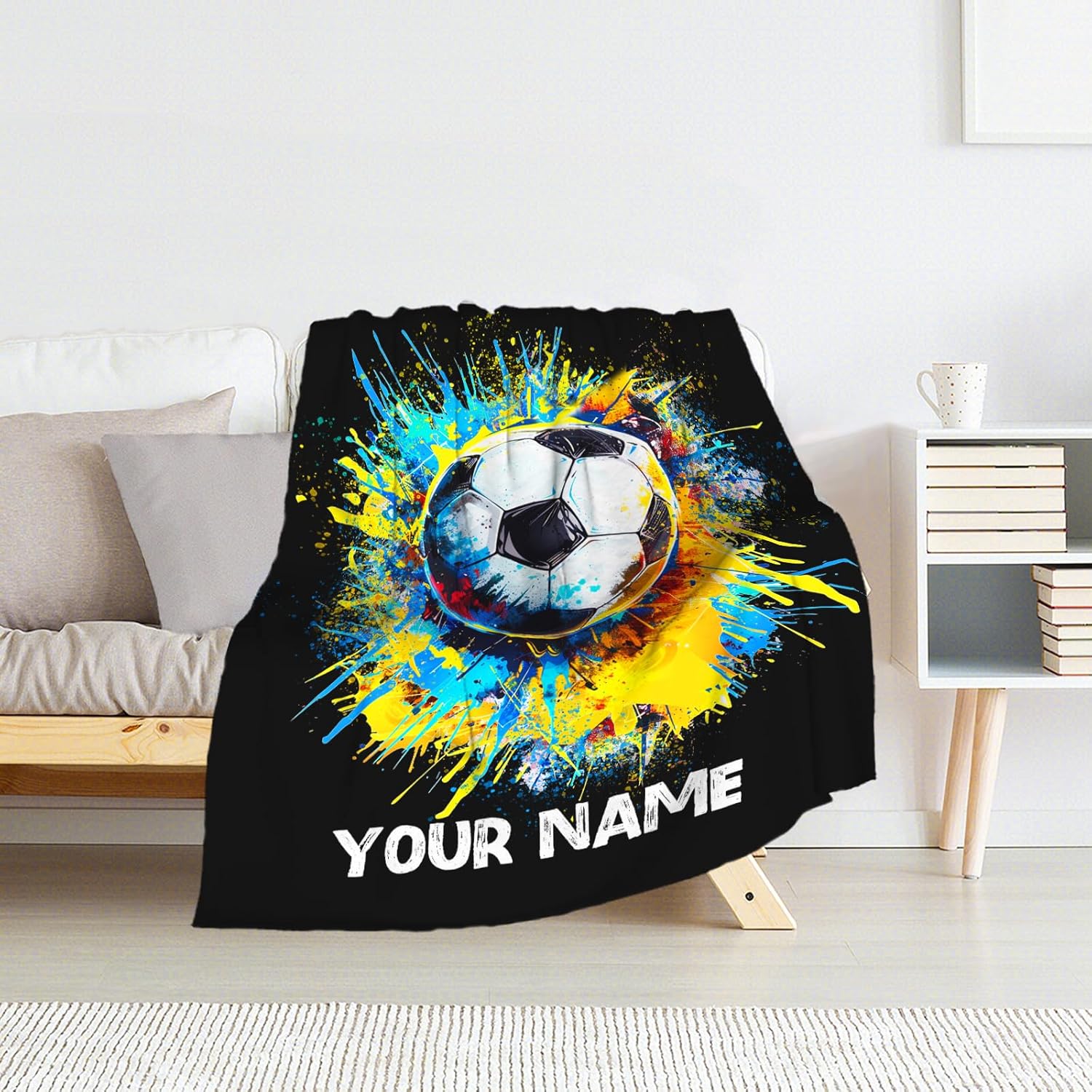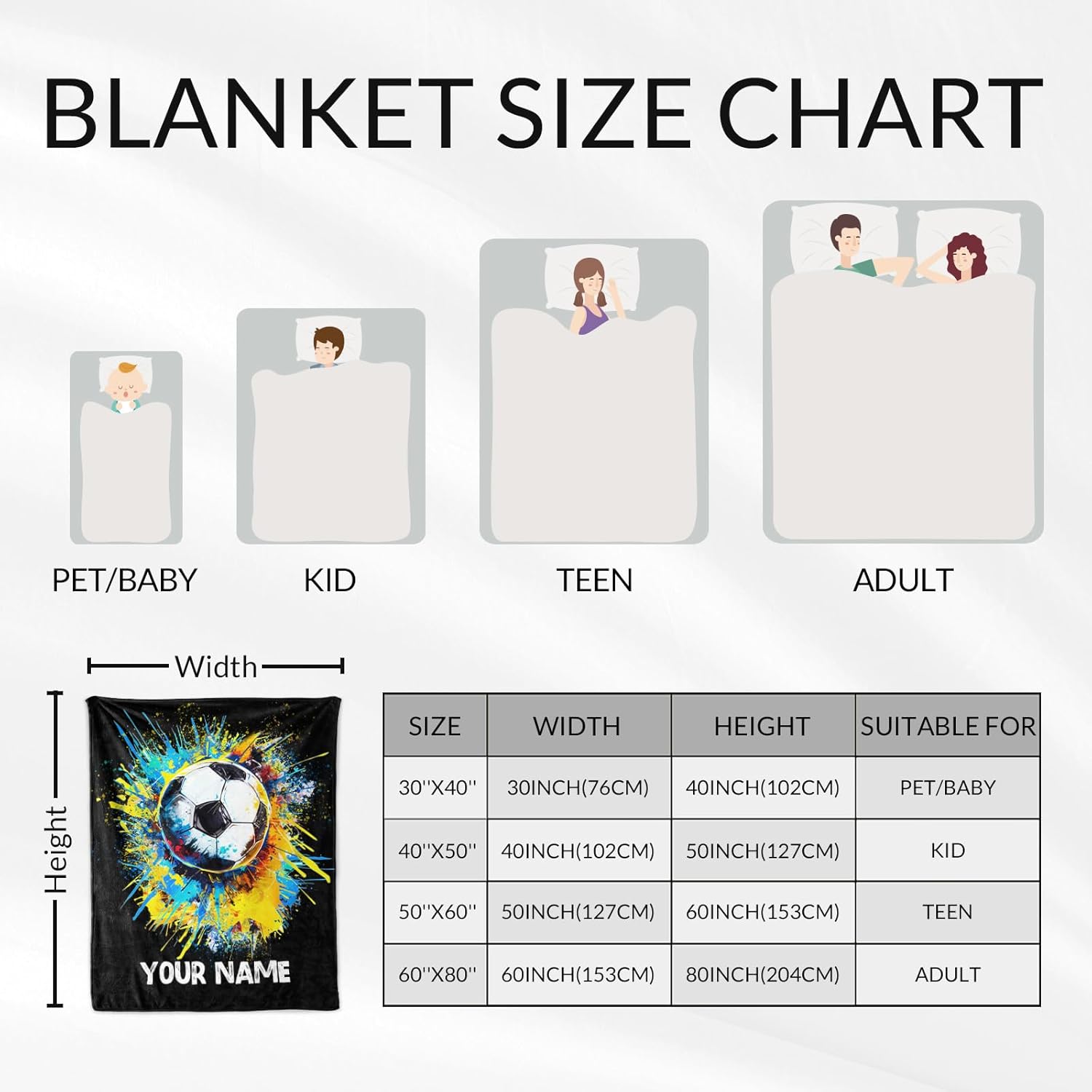 This kids blanket is made of polyester, soft and fluffy, and comes in various sizes. For example: 30x40 is a lap size, 40×50 is a crib size, 50x60 is a crib size, and 60x80 is a twin size.Warm blankets for boys and girls also offer customization options, you can customize your words into our blankets to make them special. Whether you want to use it for yourself or give it as a gift to your relatives and friends, this is a great choice. Our lightweight blankets for adults will become a happy companion in life, adding more color and fun to life.The cozy throw blanket is suitable for children, teenagers or adults. It can be used in the living room, on the sofa, at work. And the blanket is lightweight and can be easily carried. Whether you are going on a picnic or traveling, it will bring you warmth and comfort. In addition, furry blankets can also be used as a play mat on the ground for children, or provide enough warmth and care for children at night instead of parents.The soccer blanket for boys is designed with single-sided printing, suitable for machine washing or hand washing, and has the characteristics of quick drying, easy care and durability. Remember not to use bleach.