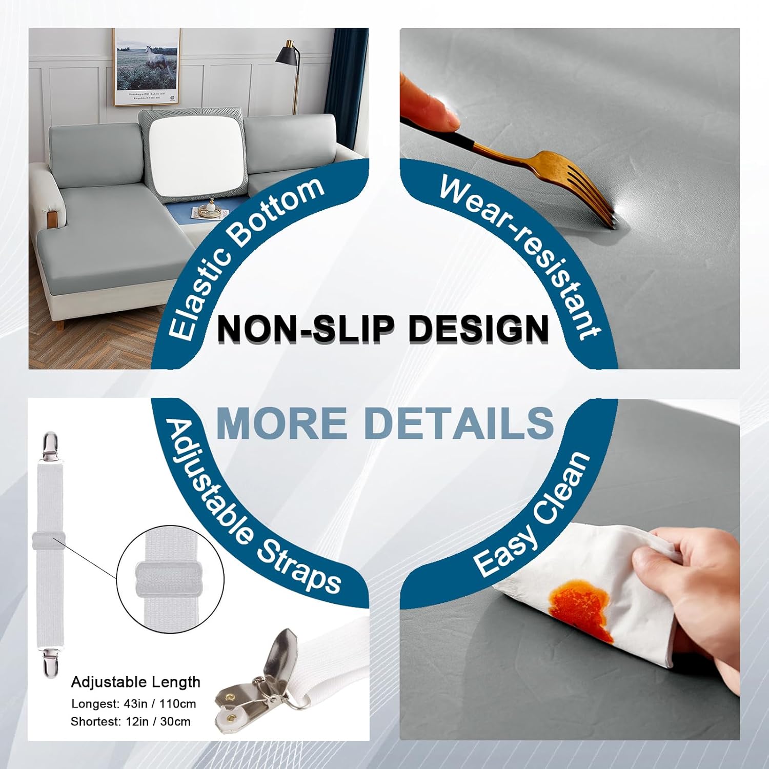 | Special Features | Anti Slip, Anti-Pilling, Anti-Wrinkle, Breathable, Dustproof, Fade Resistant, Hair Resistant, Scratch Resistant, Stain Resistant, Stretch Fit, Waterproof |