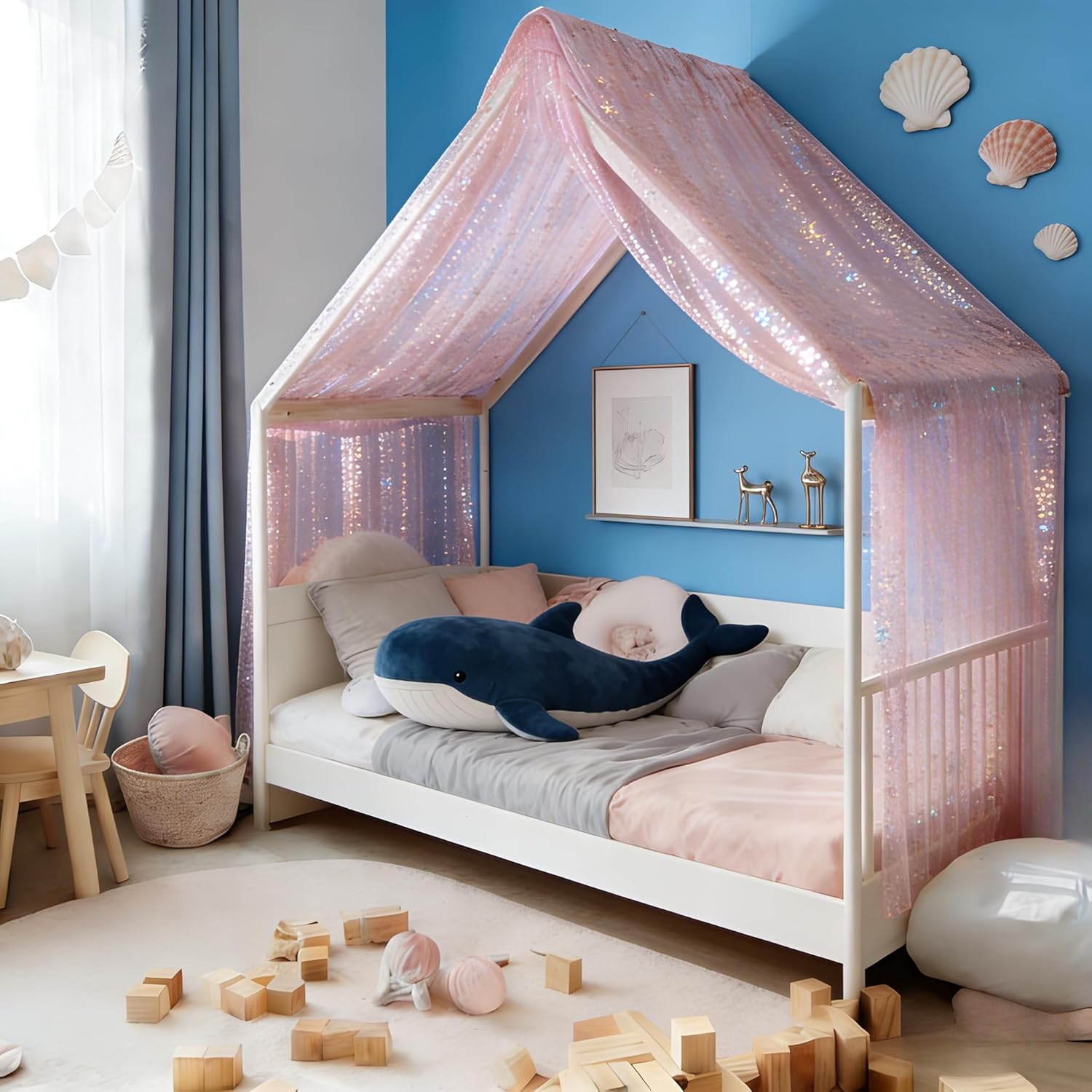 Stylish and casual, this CozyWeave Scarf Drape Sheer Bed Curtain is a great choice for decorating a child's room!✔ DELICATE PRINT: The princess canopy creates a starry sky style by attaching star and moon print glitter sequins.◆ PRODUCT SIZE: Printed bed curtain drape is packaged in 1 piece, each piece is 60 inches wide and 158 inches long.★ USE SCENARIO: The canopy is perfect for decorating children's beds, displays, walls and stairs, DIY and more.♥ EASY CARE: Beautiful appearance, very easy to install and fold.⚠ NOTE: The shiny little sequins are glued to the drapery by high temperature, there may be a little peeling off when you receive it, which is normal.At CozyWeave store, different styles of tulle curtains, drapes, blackout curtains and so on can meet your various needs, looking forward to your visit.