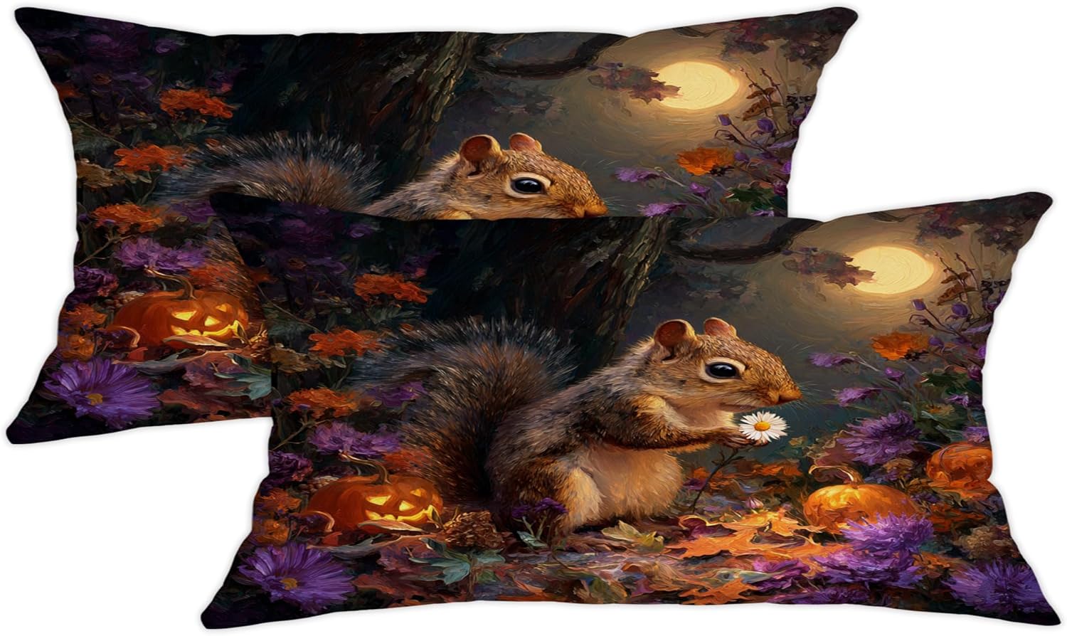 Transform your living space with these enchanting decorative throw pillow covers featuring a whimsical garden scene. The stunning artwork depicts an adorable squirrel amid a lush garden setting, surrounded by vibrant yellow dandelions, delicate blue flowers, and graceful monarch butterflies against a serene turquoise background. The detailed illustration captures the natural charm of wildlife and flora in perfect harmony. These pillow covers bring the beauty of nature indoors, making them perfect for nature lovers and those seeking to add a touch of woodland magic to their home decor. The artistic design works beautifully in living rooms, bedrooms, or any space that needs a splash of color and character. Each set includes two identical pillow covers that will instantly refresh your space with their charming garden motif. These decorative covers make wonderful accent pieces that blend seamlessly with various interior styles, from rustic to contemporary.