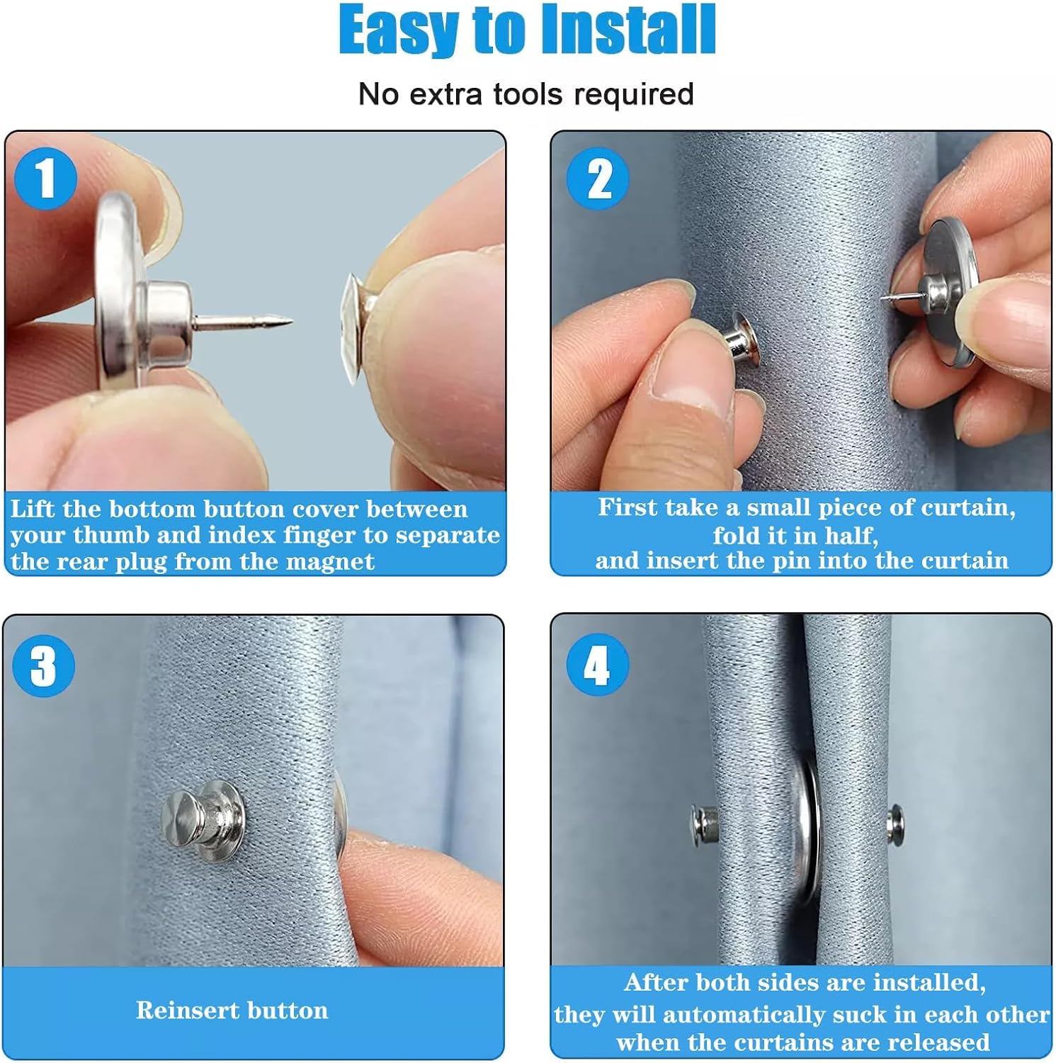 Safe Material: Rest assured that these curtain clips do not contain any harmful substances, suitable for homes with children and pets.Take a small piece of curtain and fold it in half when installing for best results.