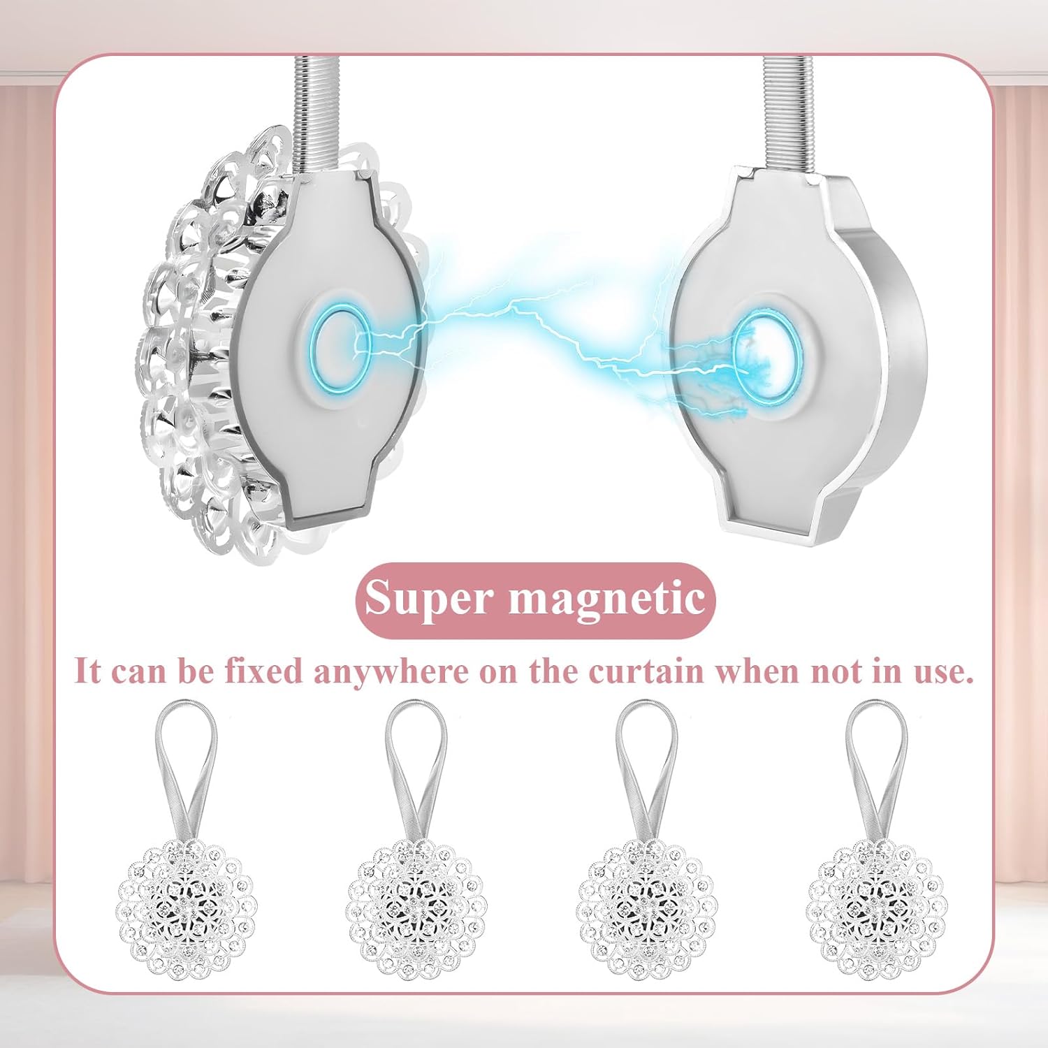 YBEATY 8PCS Curtain Tiebacks Sparkling Crystal Rhinestone Flower Drapes Buckle Clips Decorative No Drilling Curtain Tie Back Holder Holdbacks with High-Elastic Spring Band for Home Office Window DecorCategory: Curtain TieColor: SilverMaterial: Zinc Alloy Spring + ABS InlayFunction: Diamond-Encrusted Curtain HookDimensions: 12.4 × 1.97 × 0.39 inches / 31.5 × 5 × 1 cmPackaging: BagGross Weight: 20.18 oz / 572 gPackaging Contents: 8 pcs × Curtain Tie