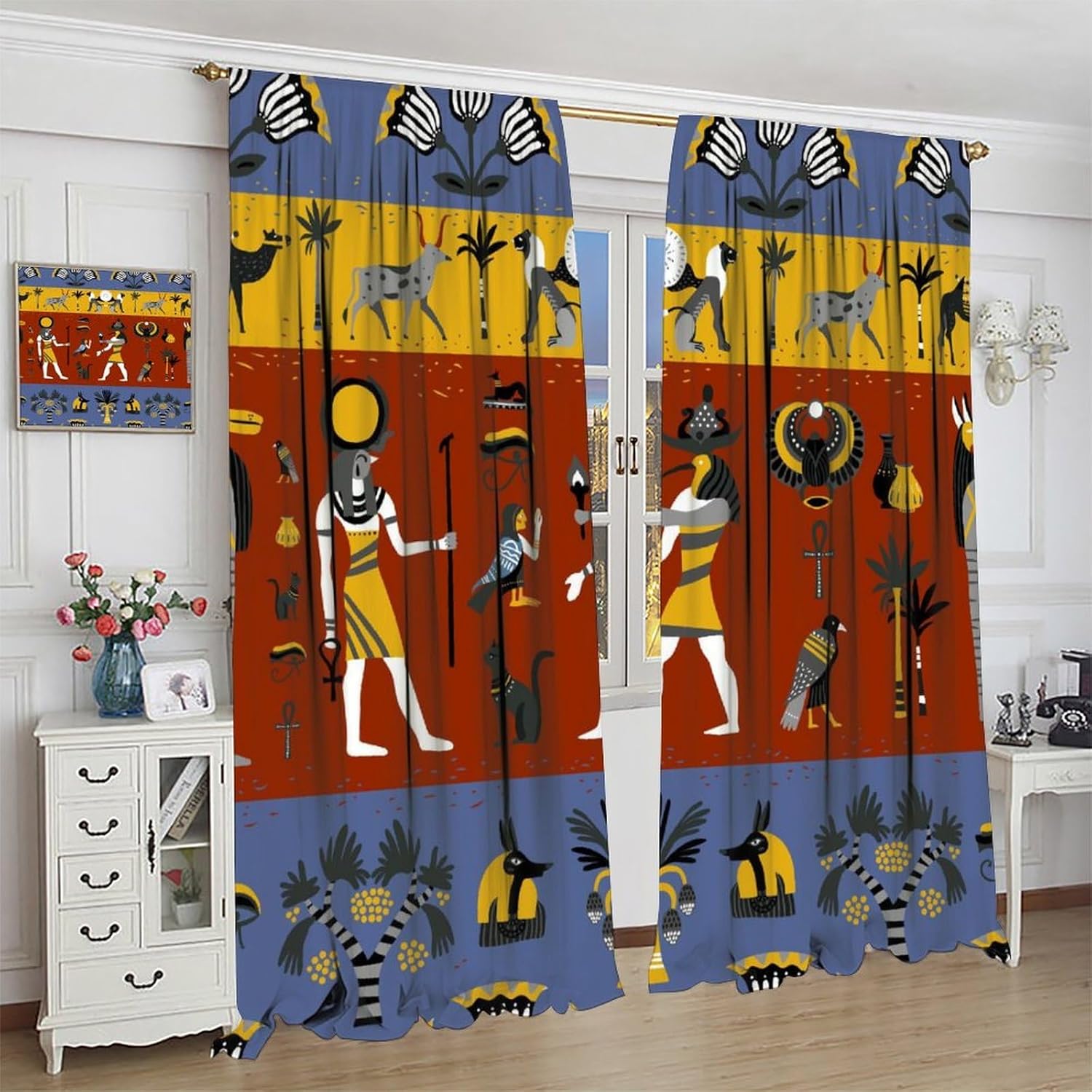 Our curtains are made from polyester fabric that is soft and smooth to the touch. We have high quality printing technology with vibrant colours and clear patterns.Curtain sizes (2 panels per set of curtains)42×63in=21×63in+21×63in55×63in=27.5×63in+27.5×63in63×63in=31.5×63in+31.5×63in63×72in=31.5×72in+31.5×72in72×63in=36×63in+36×63in84×84in=42×84in+42×84in42×45in=21×45in+21×45in42×54in=21×54in+21×54in52×84in=26×84in+26×84in✦NotePlease allow 0.4-0.8in (1-2cm) deviation, due to manual measurement.Due to differences in computers and monitors, there may be slight colour differences between the actual product and the photos.Please do not wash them together with other items.