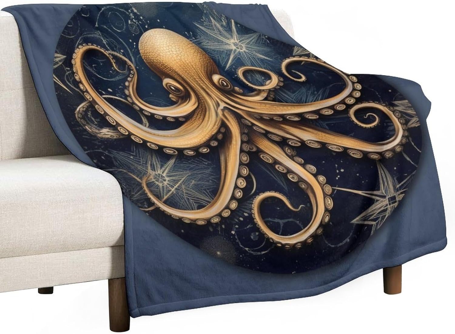 Midnight Blue Gold Octopus Flannel Cozy Warm Plush Lightweight Throw Blanket Nautical Style Throw Blanket for Couch Bed Decor for Girls Birthday Valentines Gifts 50"x60" Features: Material: Flannel Size: 30"x40"- perfect for newborns, infants and toddlers. 40"x50"-used for baby blankets and suitable for pets and as a gift just for memorial,teen. 50"x60"-more duitable for adult. 60"x80"- used for adults,also be used by multiple people toghter. 70"x80"- used for adults,also be used by multiple people toghter. All Season Use: This all-season blanket is great for year-round comfort. We recommend that if you use this lightweight blanket in the summer, you can cover it on your whole body like a blanket to bring comfort for an afternoon nap or you can simply toss it on the couch when you are done. If it is used in winter, it can be used as a bed blanket. Multi-Purpose: This photo blanket will be your perfect partner. Not very thick blanket but super soft and would still keep you warm while sitting on the couch with a good book, suitable for bed, sofa, or to use in an air-conditioned working place, or, when camping or backpacking. asy To Clean: Recommended To Wash It Before Using,Machine Washable In Cold Water,Gentle Cycle,Tumble Dry Low. Perfect Gift Idea: Pamper your loved ones with a beautiful Elegant Comfort throw blanket. Our variety of colors and prints will make our blankets the perfect gift for adults and kids on any occasion. Soft, cozy and affordable. Applicable scene: Suitable for bed, sofa, camping, cold movie theater or traveling! Or as a blanket for children, very warm. A perfect gift for your family and friends.
