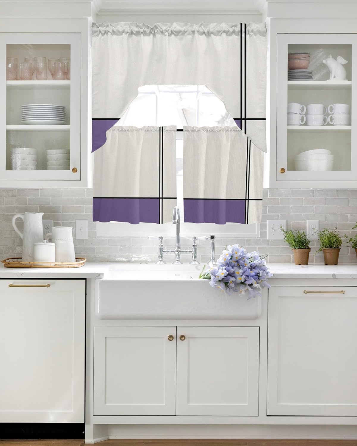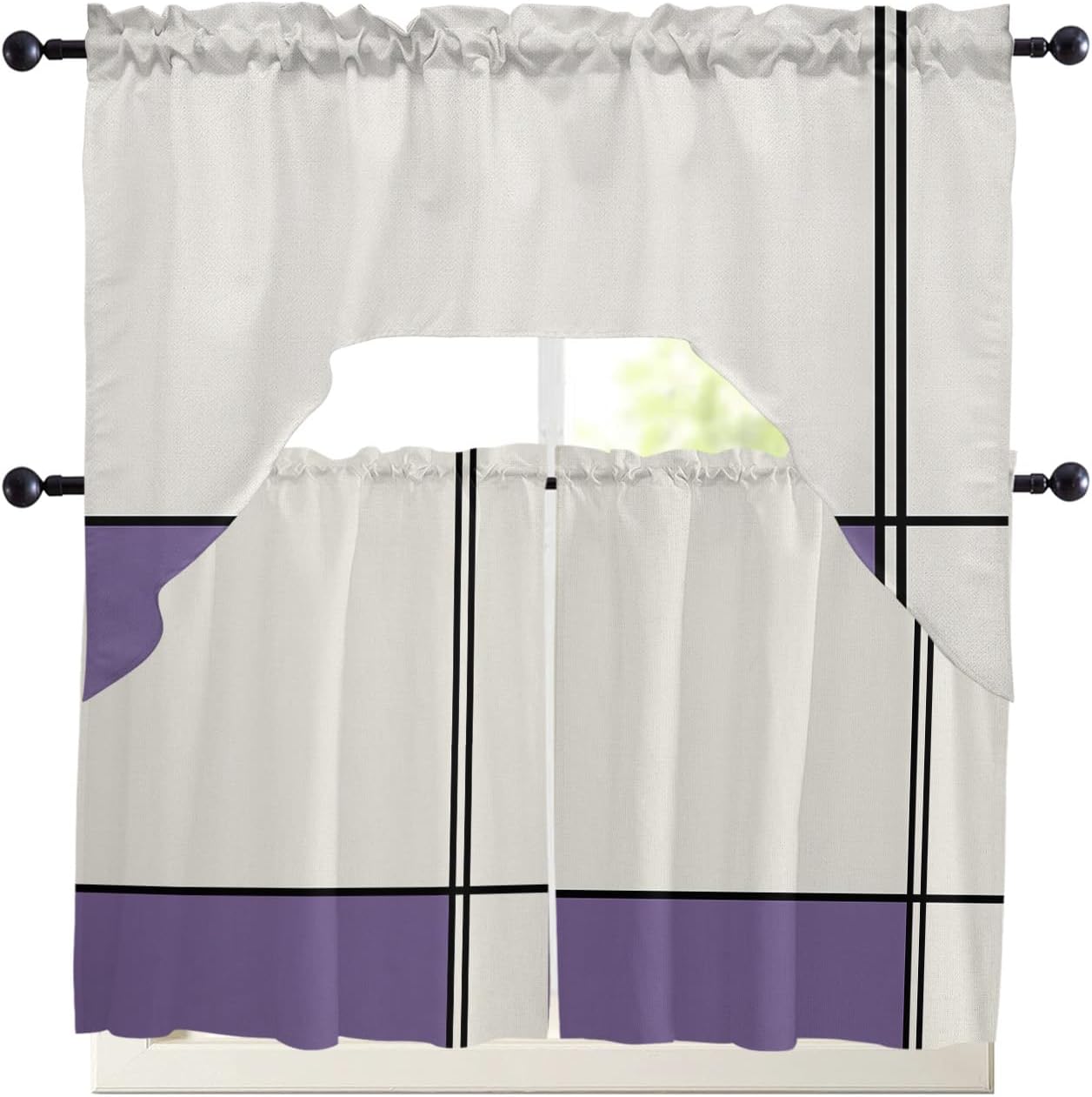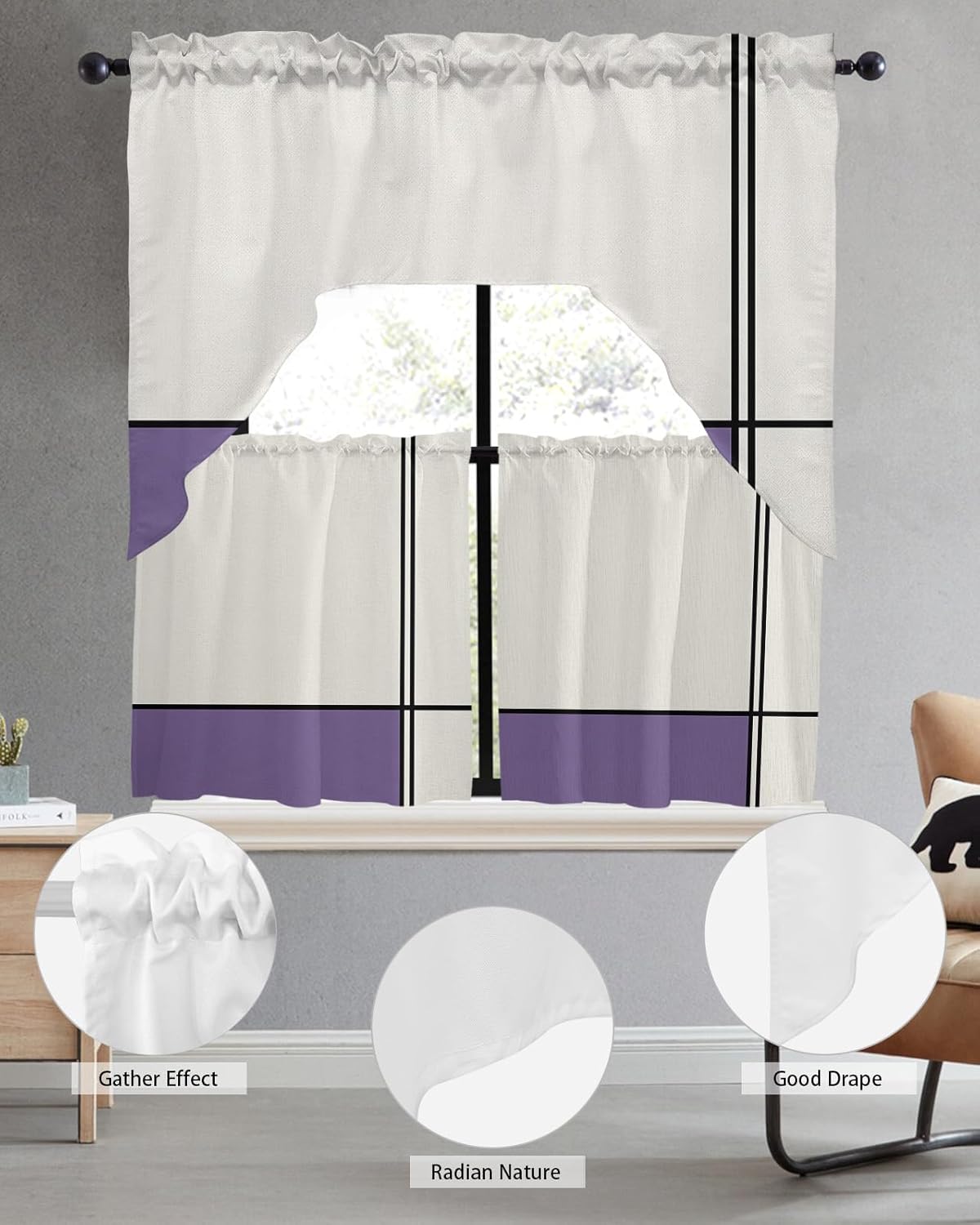 Widely Used: Our universal swag and tier curtain set is highly recommended by many customers as home decoration items.Beautiful and practical rideaux de chambre decoration are not only used in kitchens, bedrooms, dining rooms, living rooms, bathrooms, but also match other occasions, such as home office, laundry room, kids room, nursery, balcony, classroom, pet room, guest room, playroom, study room, washroom, coffee shop, cafe shop and more.Ideal Gift: Are you still worried about what gift to give for Christmas, Halloween, Thanksgiving, Independence Day, Mother's Day, Father's Day, Housewarming, Valentine's Day, St. Patrick, Easter, New Year? Why not take a look at our charming kitchen cafe curtain set, classic designs perfect for gifting to family, friends, colleagues and neighbours, etc.Various Styles: Our window drapery can perfectly match the style of your home.We have retro pastoral style, country farmhouse style, simple modern style, European aristocratic style, romantic French style, etc.Optional Colors: Bright colors are an important part of kitchen curtains sets for windows clearance.We have black, white, grey, red, brown, silver, beige for adults and pink, green, orange, blue, yellow, rainbow, multi-color for kids.Tip: Due to everyone uses different light or monitors, there may be a slight error in the color of the window curtain panels. Don't affect the beauty and use of the product.Just rod pocket curtains, no rods.