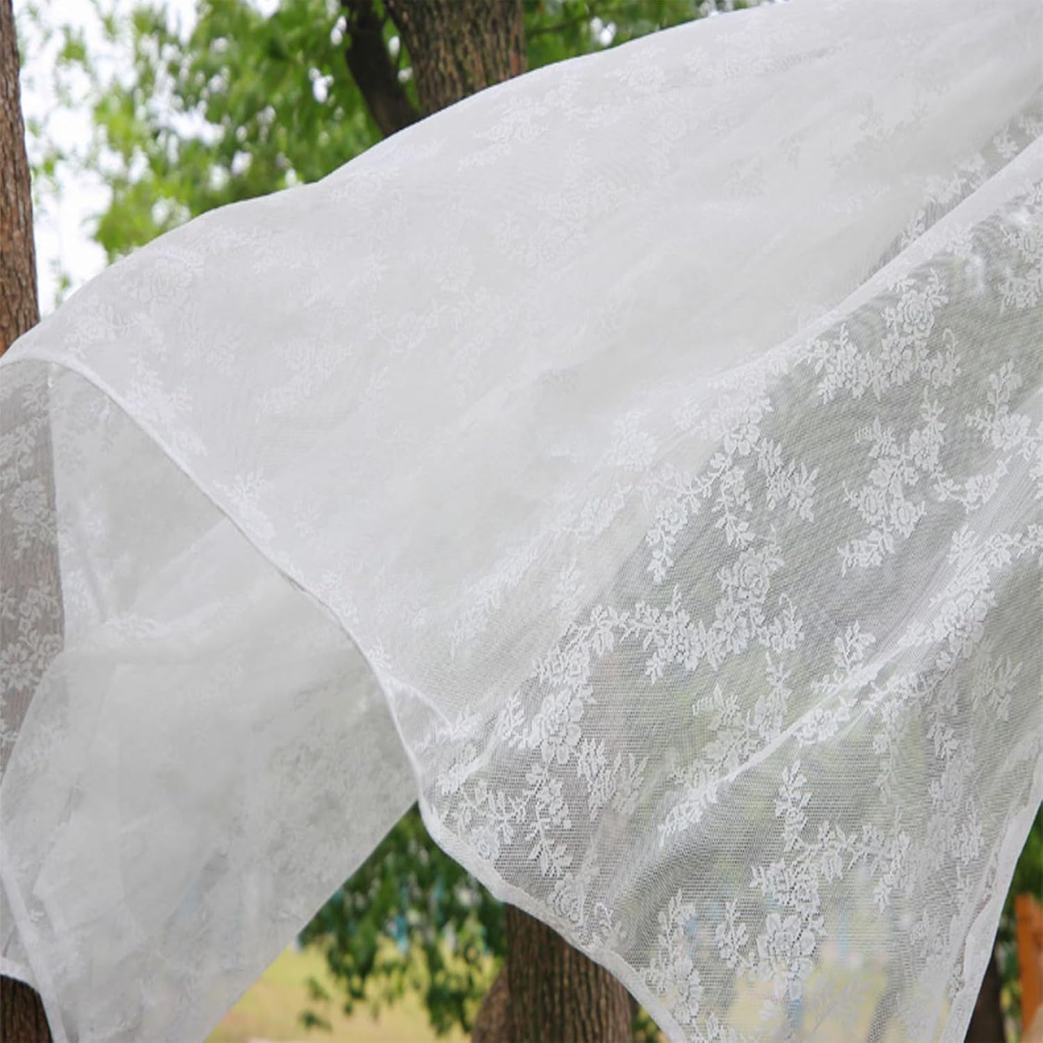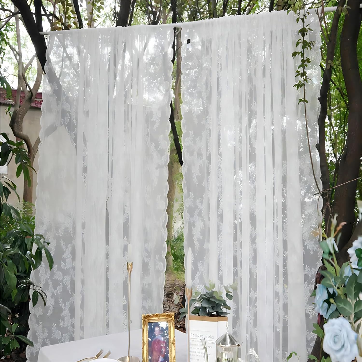 ENJOYBRIDAL White 63 Inch Curtains for Living Room Scalloped Drapes Vintage Bedroom 2 Panels Short Window Curtain Panels Sheer Rustic Farmhouse Rod Pocket Boho Window Treatments