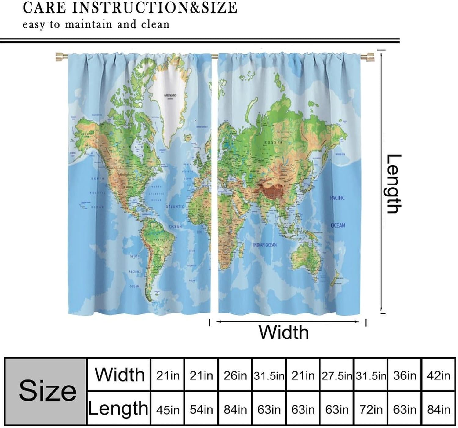 ☆High quality blackout window curtains. Made from high quality 100% polyester tight woven,These one of a kind decorative curtains will help transform your room into your private sanctuary! Perfect decoration item for your living room, dining room, bedroom, and dorm rooms.☆These one of a kind Curtains will help transform your room into your private! Perfect for any room including living rooms, bedrooms dining and dorm rooms. Matches well with vario color palettes of rugs, furniture and any other home decor accessory.☆Either a present to your family,mother, father, sister, brother, grandma, grandpa, wife, hband, son, daughter, friend, relative, boyfriend, girlfriend or to yourself and all other beloved ones. the item should be interesting, authentic.Everyone will like them.☆Allow 1-3cm errors because of manual measurements; slight color difference due to computer display or light, and make sure you don't mind before ordering☆☆Size DimensionOne panel measures 21" (W) x 45" (L). The overall size is 42"(W) x 45"(L).One panel piece measures 21" (W) x 54" (L). The overall size is 42"(W) x 54"(L).One panel piece measures 21" (W) x 63" (L). The overall size is 42"(W) x 63"(L).One panel piece measures 27.5" (W) x 63" (L). The overall size is 55" ( W ) x 63" ( L ).One panel piece measures 26" (W) x 84" (L). The overall size is 52" (W) x 84" (L).One panel piece measures 31.5" (W) x 63" (L). The overall size is 63" (W) x 63" (L).One panel piece measures 36" (W) x 63" (L). The overall size is 72" (W) x 63" (L).One panel piece measures 31.5" (W) x 72" (L). The overall size is 63" (w) x 72" (L).One panel piece measures 42" (W) x 84" (L). , The overall size is 84" (W) x 84" (L).