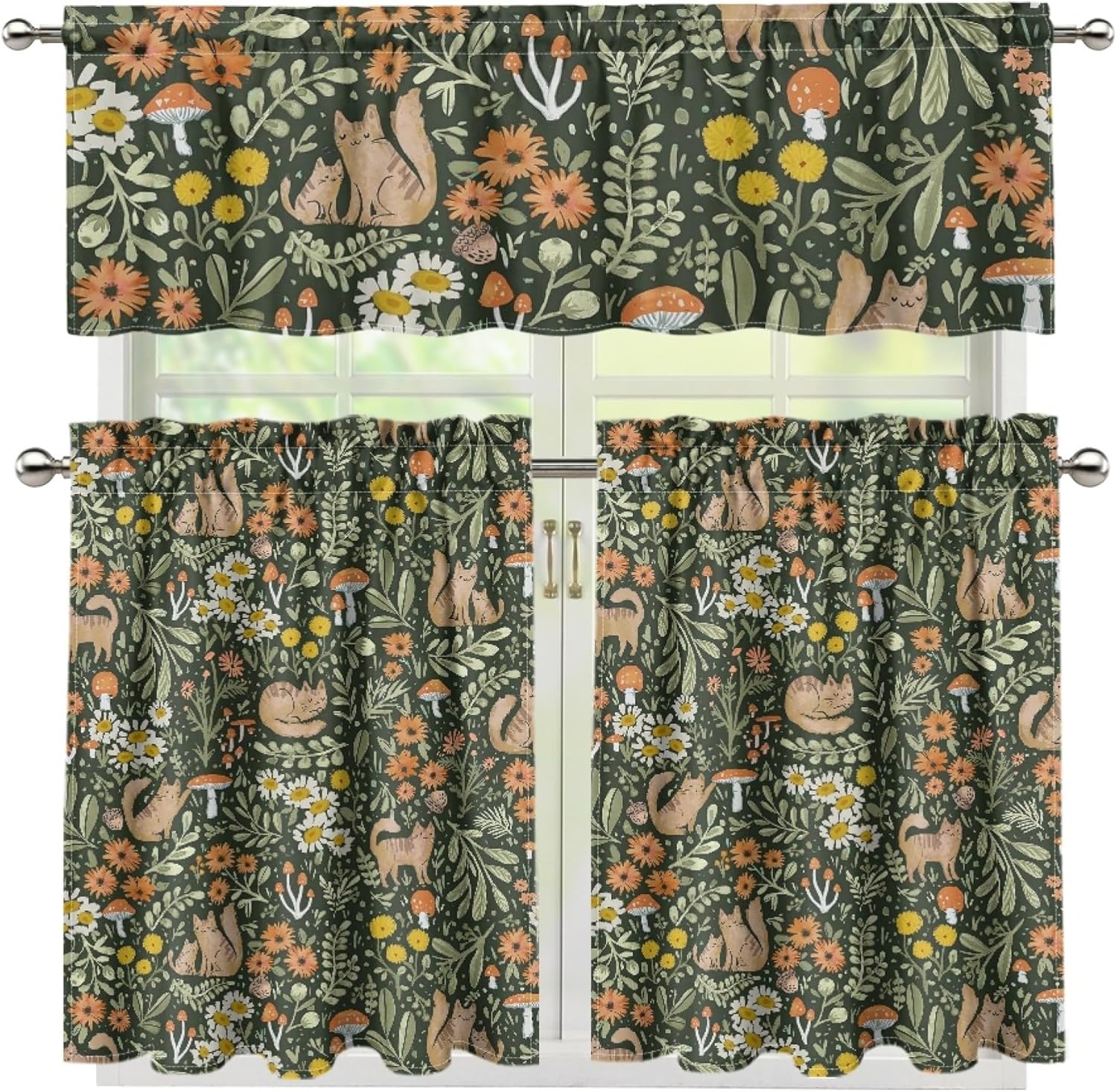 Material: Made of 100% polyester fabric. Size: 54 inches width x 18 inches length/54x18in 1 piece + 27x24in 2 piece/54x18in 1 piece + 27x36in 2 piece. Hanging: Maximum no more than 1.5 inches rod pocket for hanging and moving easily. Easy care: Machine washable in cold water, gentle cycle, tumble dry. Iron at low settings if needed. Exquisite workmanship: Make sure every detail part of your valance are in perfect condition. Perfect decoration: These valance add a comfortable, casual atmosphere to your home. Warm tips: Measure your pole and window size before you choosing. After-Sales: Any questions or problem, please contact us first. Thank you for choosing our valance curtains!