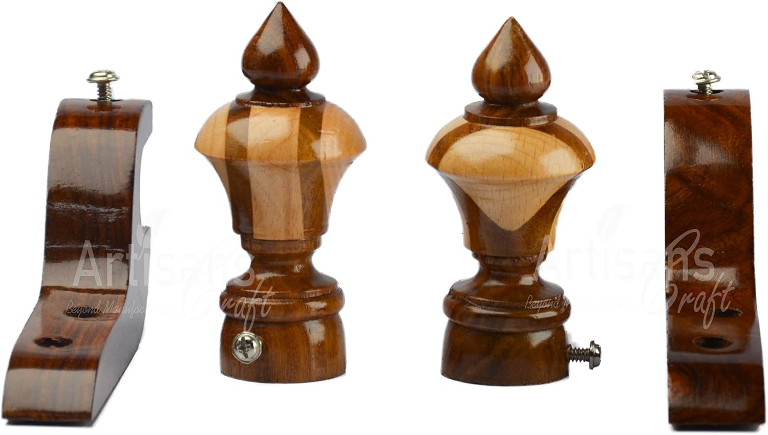 ARTISANS CRAFT Handmade Wooden Curtain Rod Brackets are designed to add both strength and elegance to your window treatments. These handcrafted brackets feature decorative round finials and a natural rosewood finish that enhances the beauty of curtains while providing reliable support for curtain rods.Made from solid wood, these curtain rod holders are durable and sturdy enough to support light, medium, and heavy curtains. The thick and strong construction helps keep curtain rods secure and stable for everyday use.These brackets are compatible with curtain rods measuring 1 inch, 1 1/4 inch, 1 3/4 inch, and 2 inches in diameter, making them suitable for a wide range of window treatments. They work well with decorative rods, drapes, and curtains in different rooms of your home.The classic round finial design adds a refined decorative touch to living rooms, bedrooms, dining rooms, offices, and farmhouse style interiors. The natural wood tone blends easily with modern, traditional, rustic, and bohemian home décor styles.This set includes 4 wooden curtain rod brackets along with mounting screws and wall anchors for easy installation. Ideal for new curtain setups or replacement hardware, these decorative brackets combine practical functionality with timeless handcrafted design.