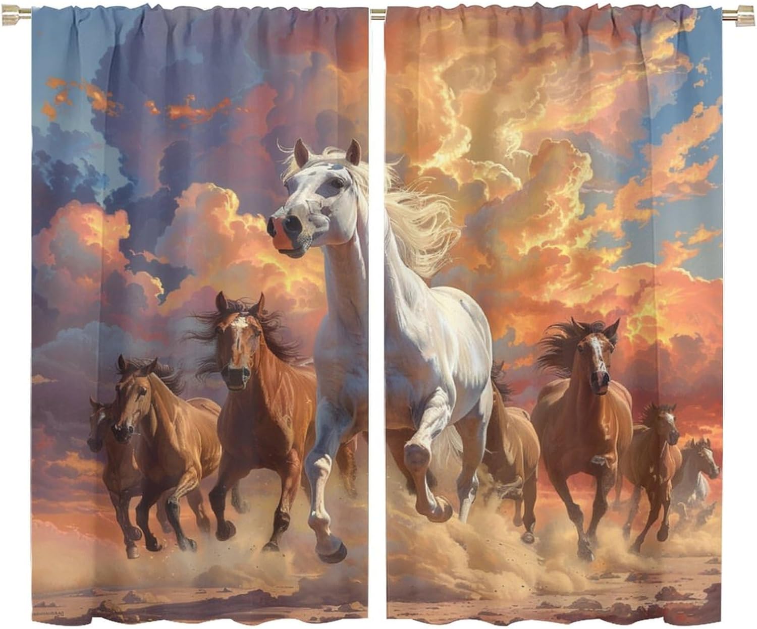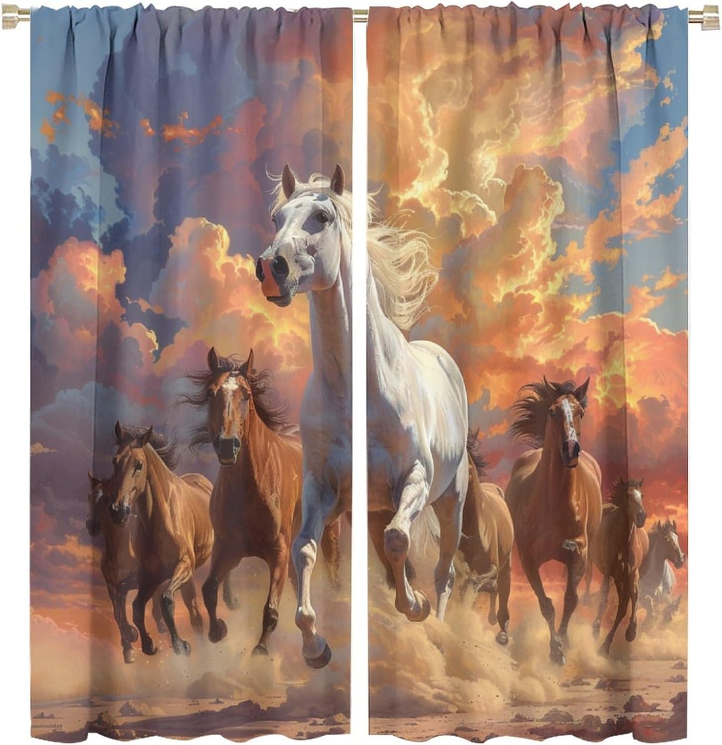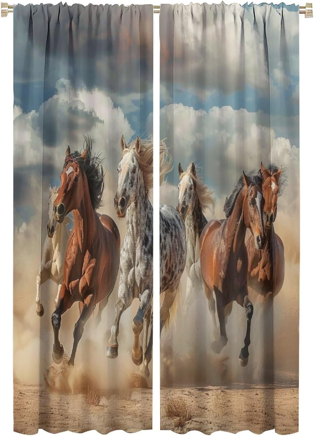 Welcome to our store.We Provide customers affordable and high-quality curtains and area rug with service they can trust around the world.TIKRBMLB Galloping Horse Blackout Curtains is the beautiful choice for Bedroom Living Room and Kitchen.The design is versatile and can blend with various home decor styles.Our Draps are made by Good and Healthy material. They are Silky touch and beautiful drape.Our curtains are perfect for Late sleepers, Shift workers, Seniors, Infants, Students, Computer operators and many more.Kindly Remind:- Don't use sharp things scratching curtains.- For proper fullness panels should measure 1.5-2 times the width of your window.- As different computers display colors differently, the color of the actual item may vary slightly from the above images.