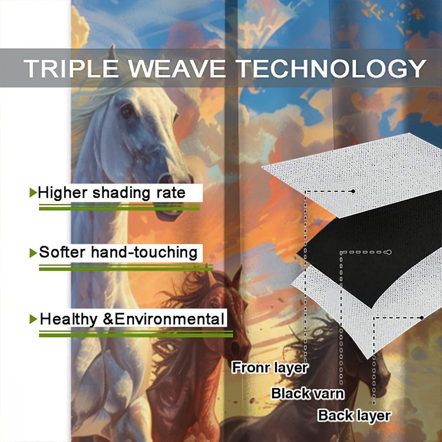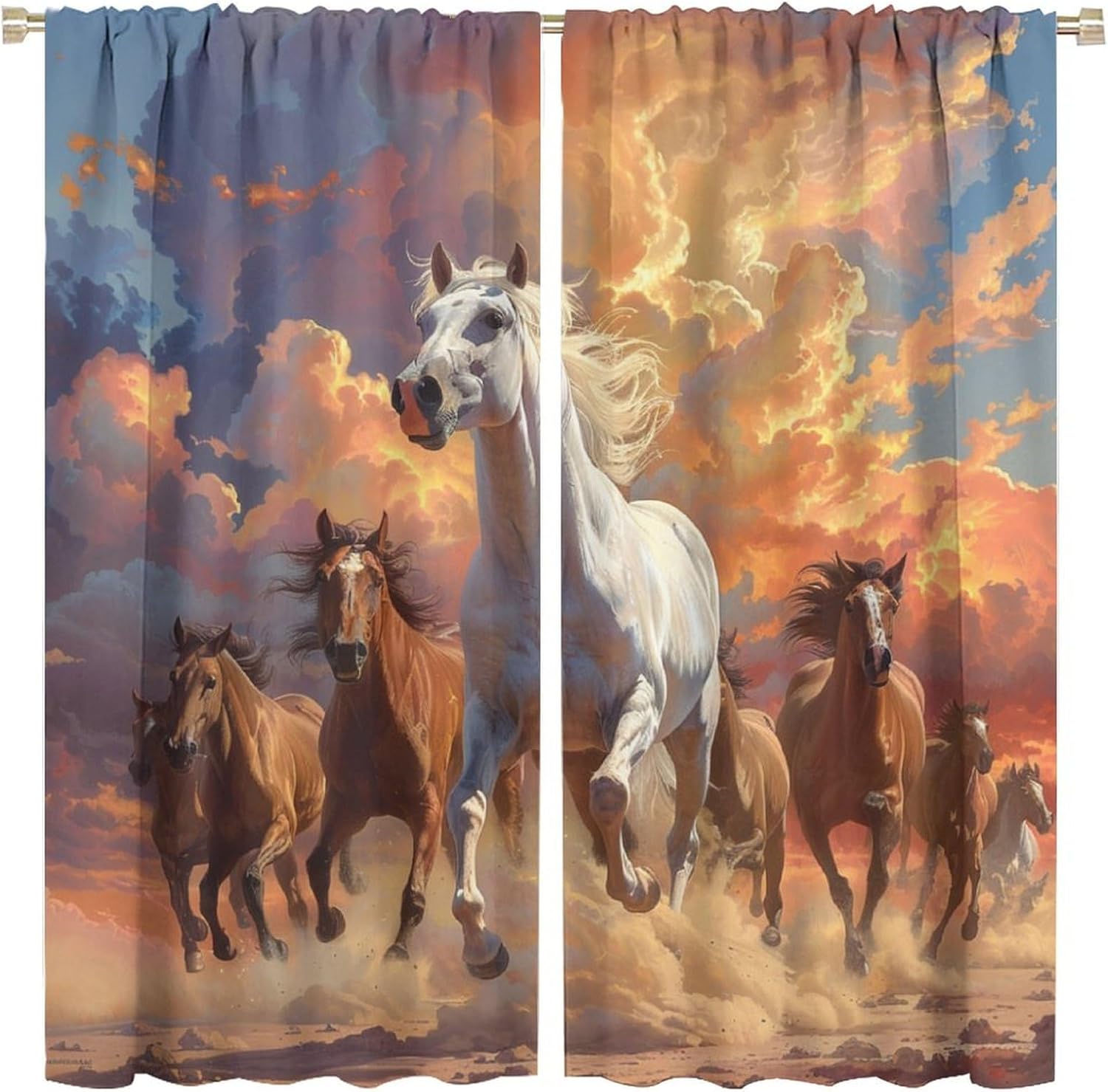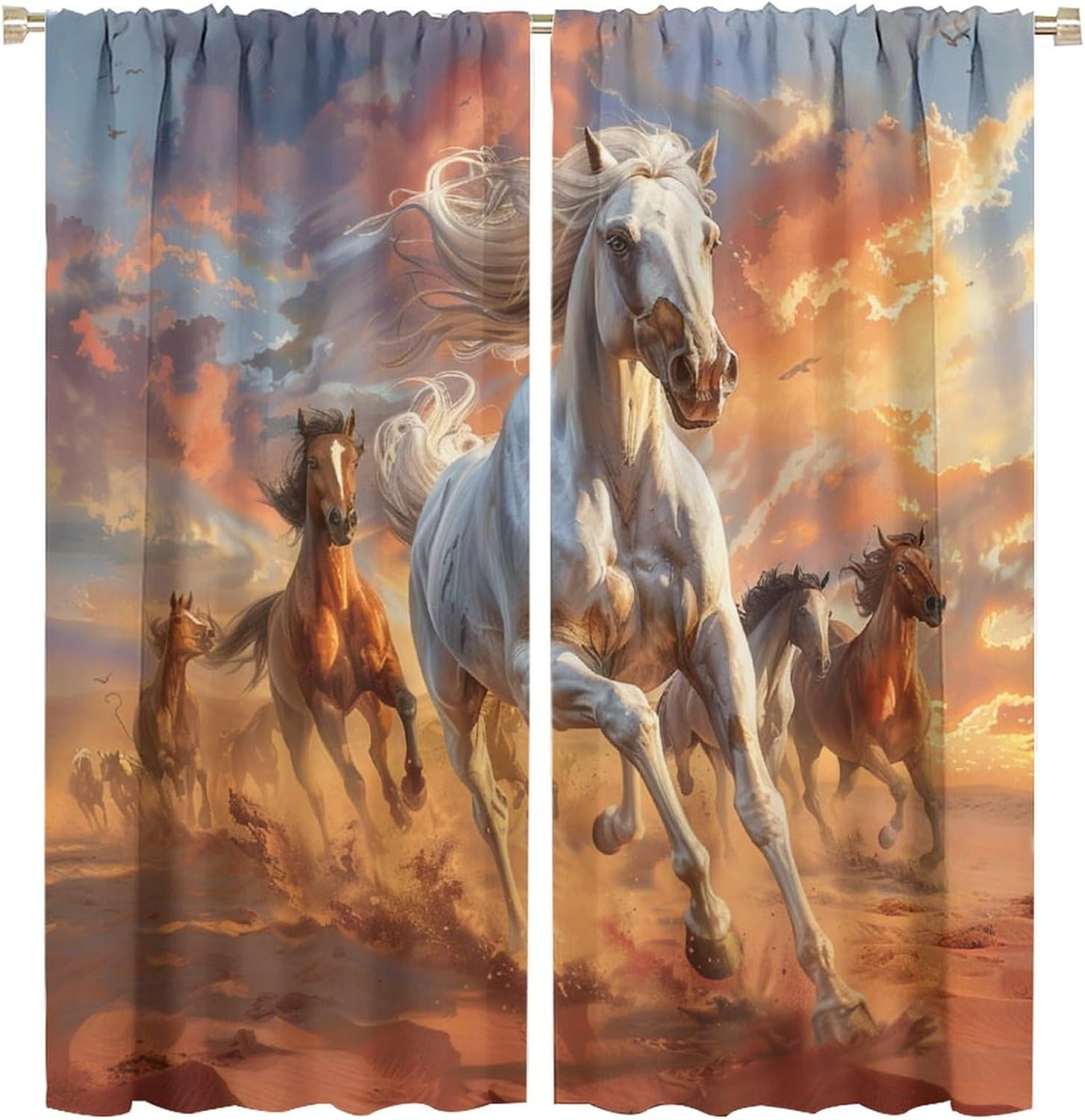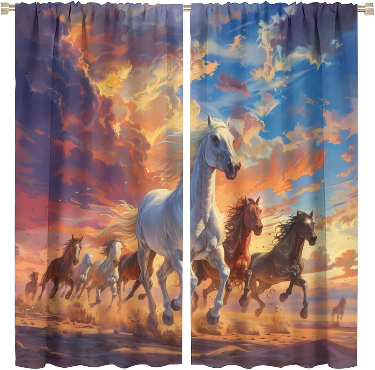 Welcome to our store.We Provide customers affordable and high-quality curtains and area rug with service they can trust around the world.TIKRBMLB Galloping Horse Blackout Curtains is the beautiful choice for Bedroom Living Room and Kitchen.The design is versatile and can blend with various home decor styles.Our Draps are made by Good and Healthy material. They are Silky touch and beautiful drape.Our curtains are perfect for Late sleepers, Shift workers, Seniors, Infants, Students, Computer operators and many more.Kindly Remind:- Don't use sharp things scratching curtains.- For proper fullness panels should measure 1.5-2 times the width of your window.- As different computers display colors differently, the color of the actual item may vary slightly from the above images.