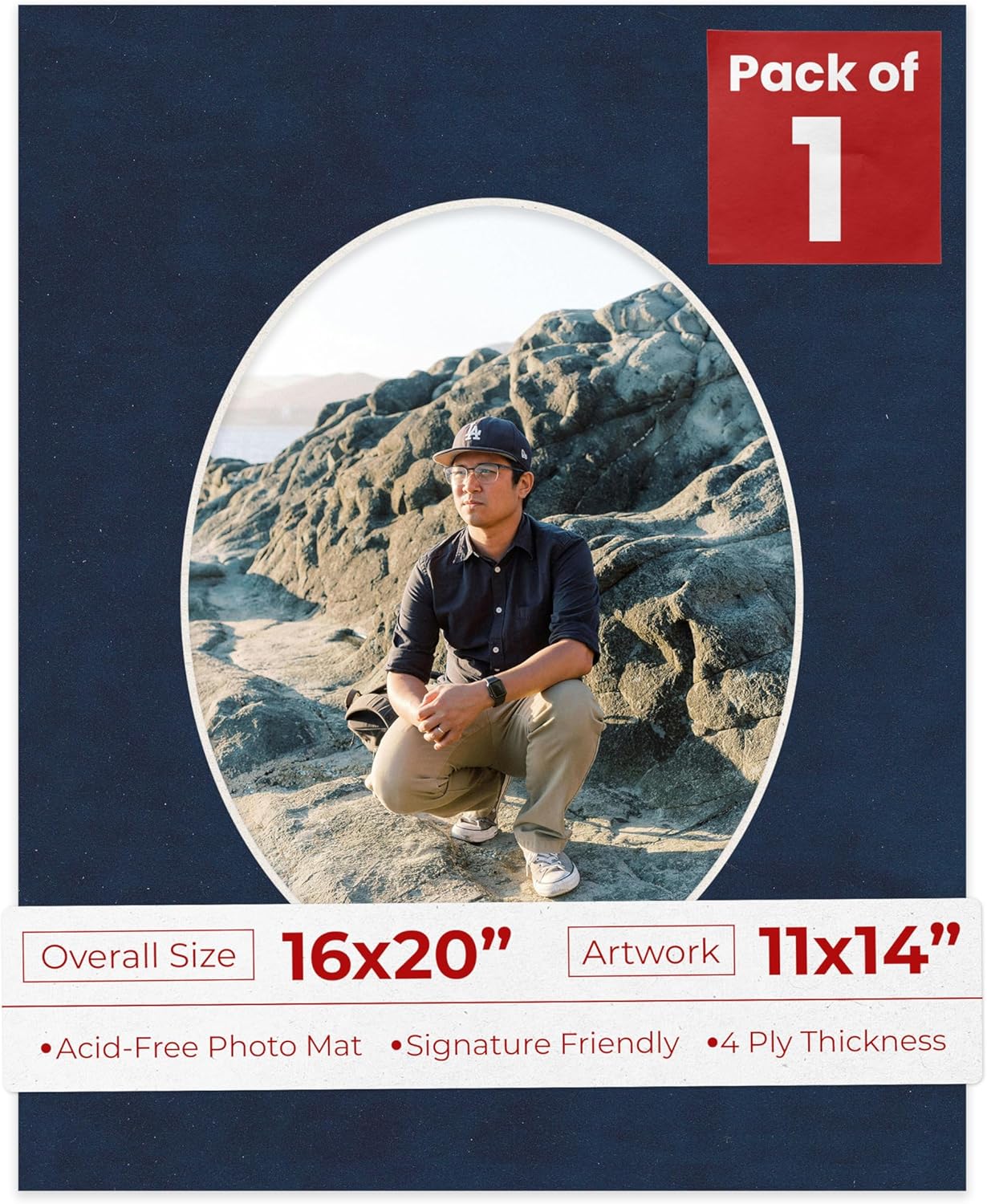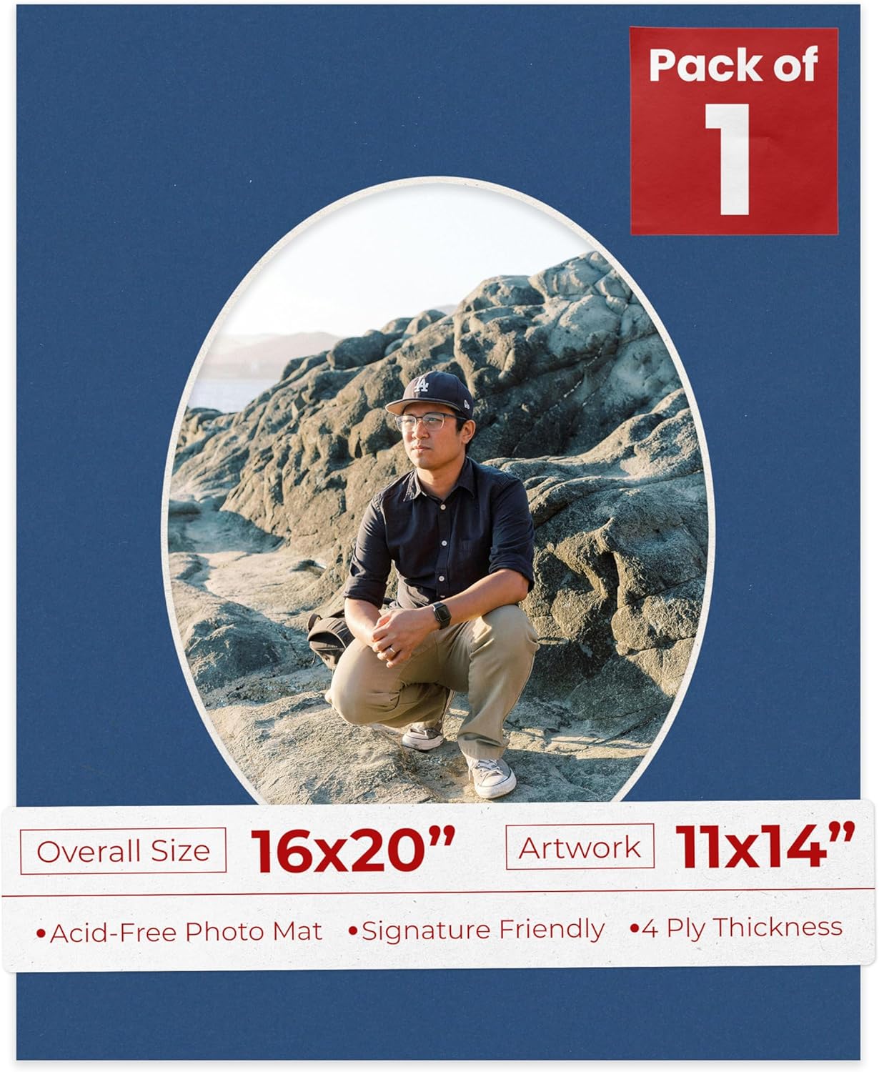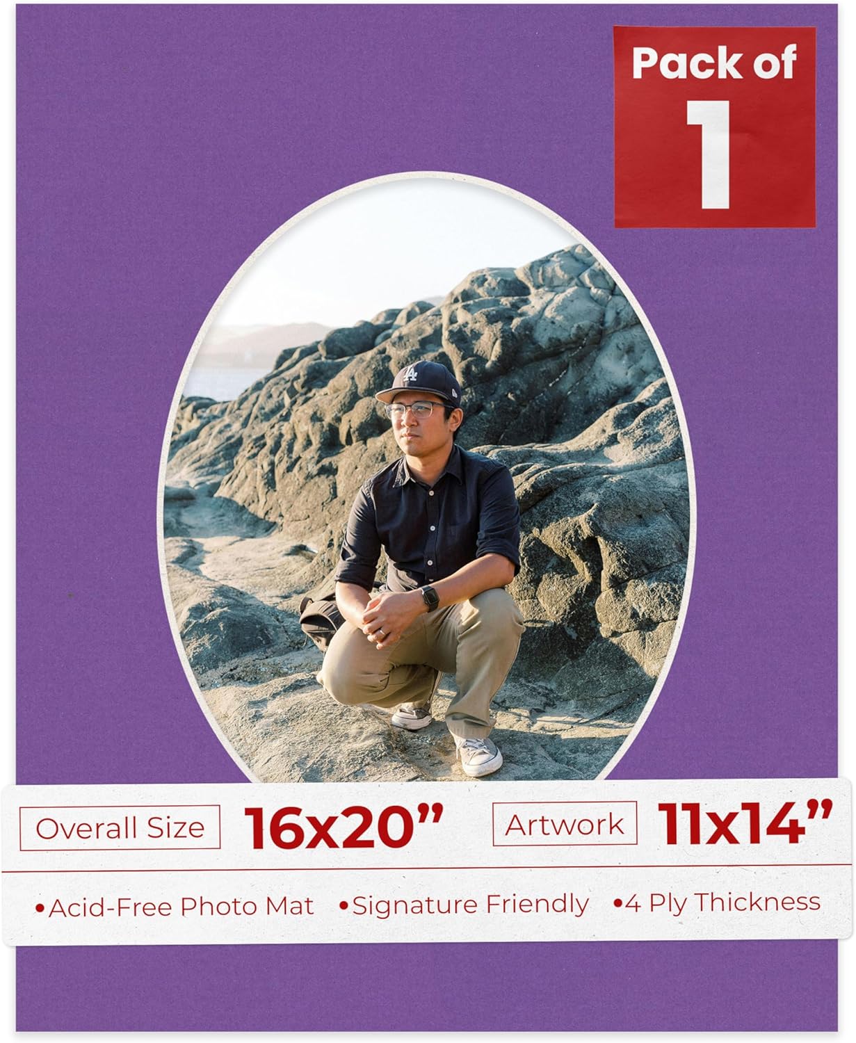 OVERALL SIZE (Made to fit a Frame Size Measuring) 16x20 Inches | Bevel Cut Oval Opening Size of 10.5x13.5 inches | For a Photo Measuring 11x14 Inches. THIS IS FOR 1 single matboard. Rattan beige PHOTO MAT with a oval bevel cut opening. A great way to change up the look of an existing frame with a new accent mat board. This matte also works great as a replacement for damaged, dirty, or faded matting in your old frames. PREMIUM QUALITY: Our precut photo matboards are acid free & precision cut with a 45 degree bevel by machine for perfect corners and NO over-cuts every single time. All of our precut matboards are MANUFACTURED BY POSTER PALOOZA IN THE USA.