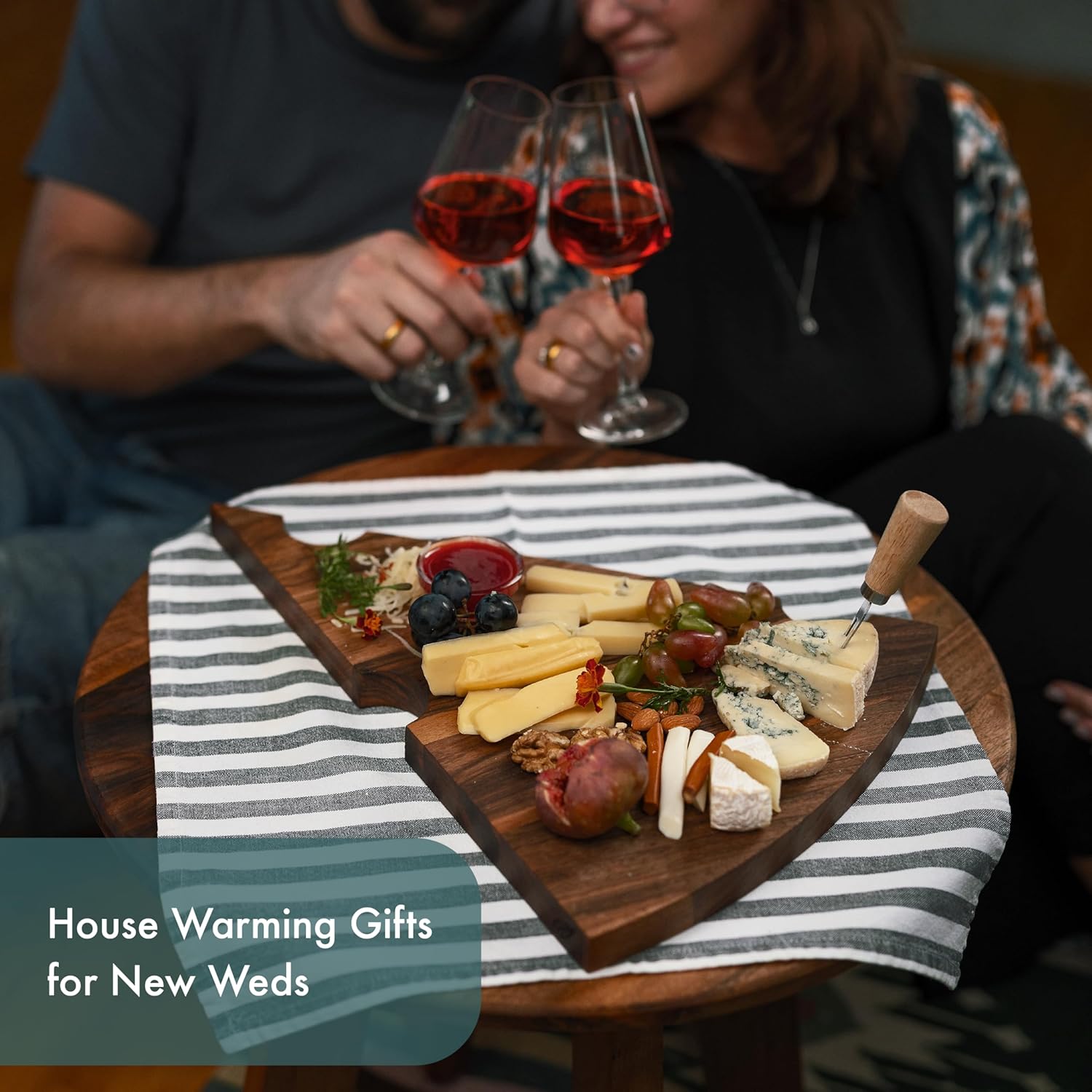 Transform your gatherings with this stunning wooden charcuterie board featuring a unique cheese-inspired design that turns any occasion into something special. Crafted from premium walnut wood in Georgia, this reversible cheese board blends practical function with artistic style, offering smooth surfaces on both sides for effortless cleaning and maximum versatility.The cheese-shaped silhouette makes this charcuterie board truly stand out from typical serving boards. It's the kind of piece that gets people talking - guests always ask where you found it. At 12.6"×11"×0.59", there's plenty of room for cutting and serving cheese, cured meats, crackers, and appetizers, yet it's surprisingly lightweight and easy to handle.What makes this wooden cheese board so practical is how both smooth surfaces work double-duty. You can slice cheese on one side, then flip it to serve your spread. The easy-to-clean walnut surface maintains its beauty with minimal effort, while the rich wood grain makes even simple cheese and crackers look restaurant-worthy.Gift-giving becomes effortless with this charcuterie board. Whether it's housewarming gifts new home, birthday presents, Christmas gifts, wedding gifts for couples, or hostess gifts for any occasion, people genuinely appreciate receiving something this thoughtful and unique.Care Instructions: - Hand wash with warm soapy water, dry immediately - Monthly treatment with food-grade mineral oil - Store upright to maintain shape and prevent crackingPerfect for anyone who loves bringing people together over good food and conversation.