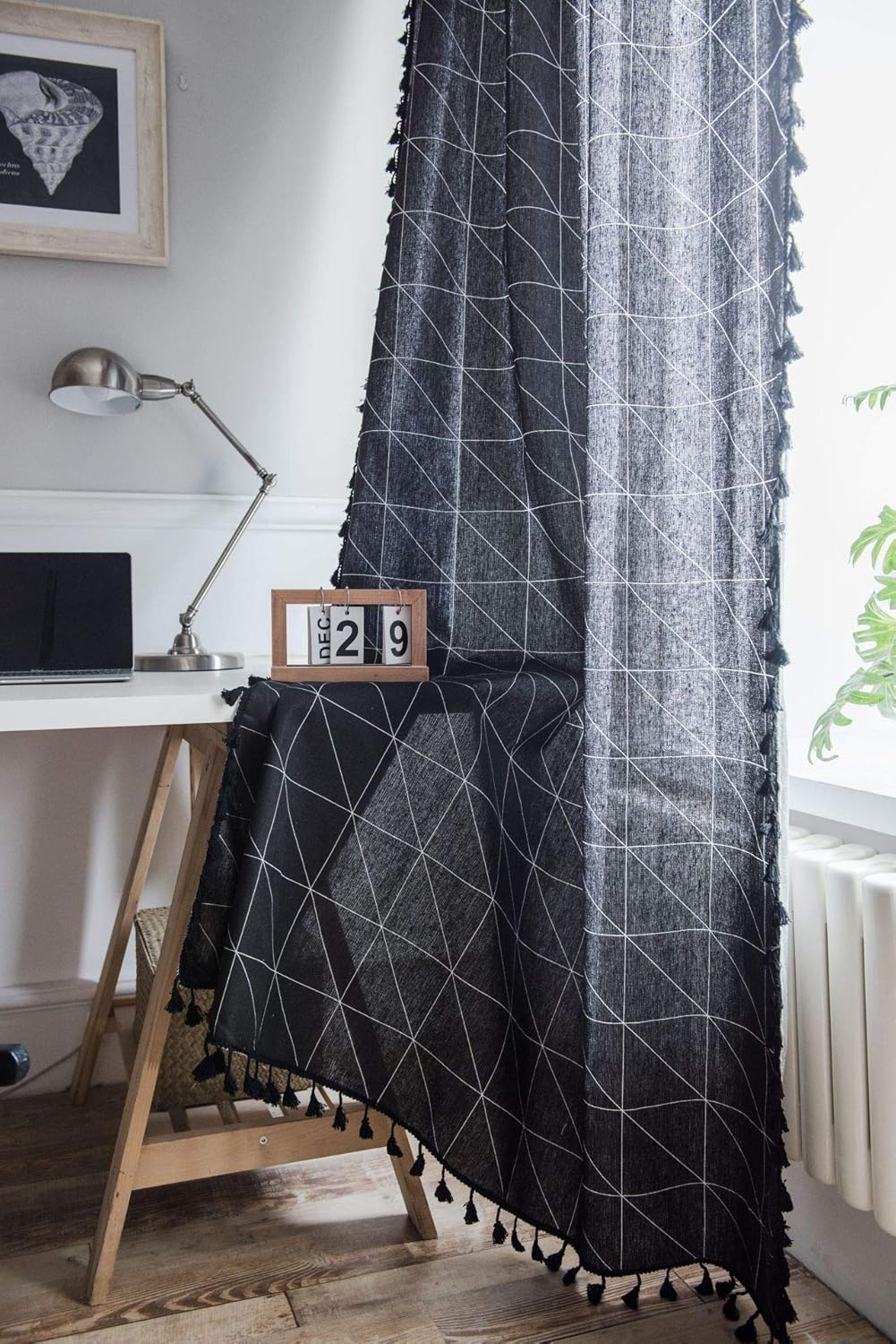 Features: -Half shading, not full blackout curtain, with elegant tassel, decorate your windows, and protect your furniture and floors from the ravages of the sun. Specifications: Material: Cotton linen 6 Sizes: 59" W x 63"L(150CM x 160CM), 59" W x 71"L(150CM x 180CM), 59" W x 79"L(150CM x 200CM), 59" W x 87"L(150CM x 220CM), 59" W x 94"L(150CM x 240CM), 59" W x 102"L(150CM x 260CM) Color: Black Tips: 1. Color may be slightly different different from the pictures due to the light and screen setting difference. 2. Measurements were taken manually, please allow 1-2cm difference.