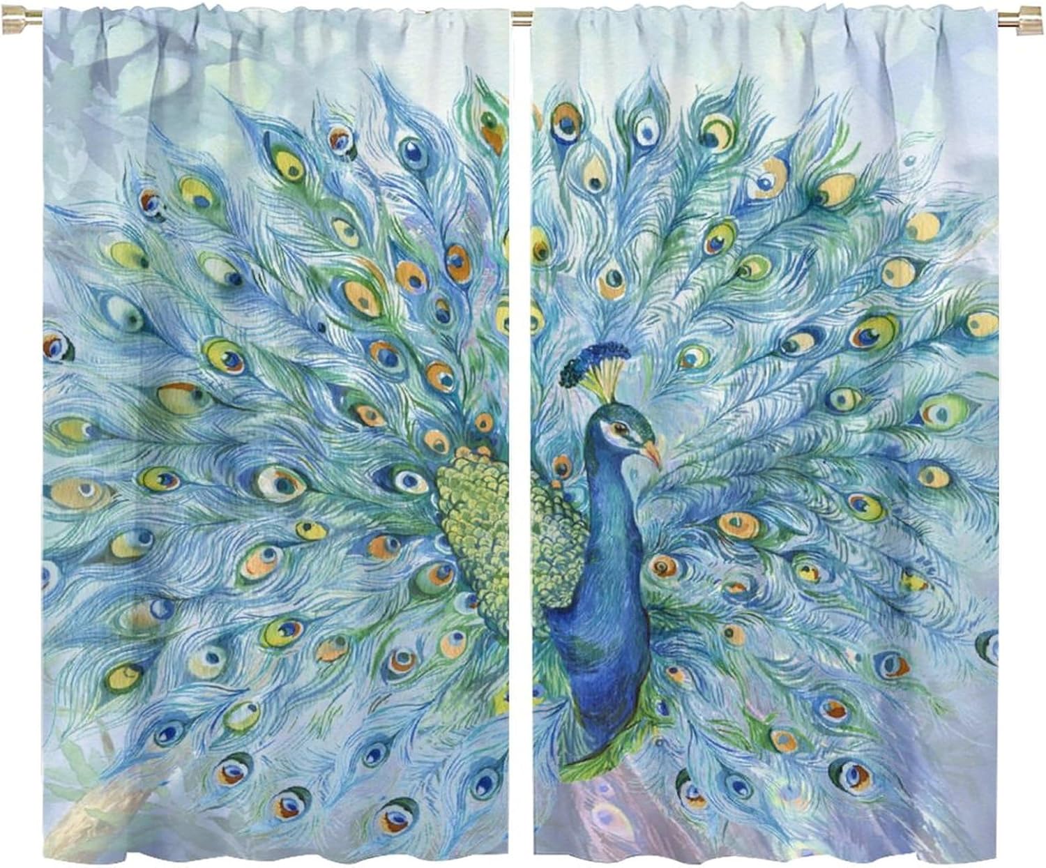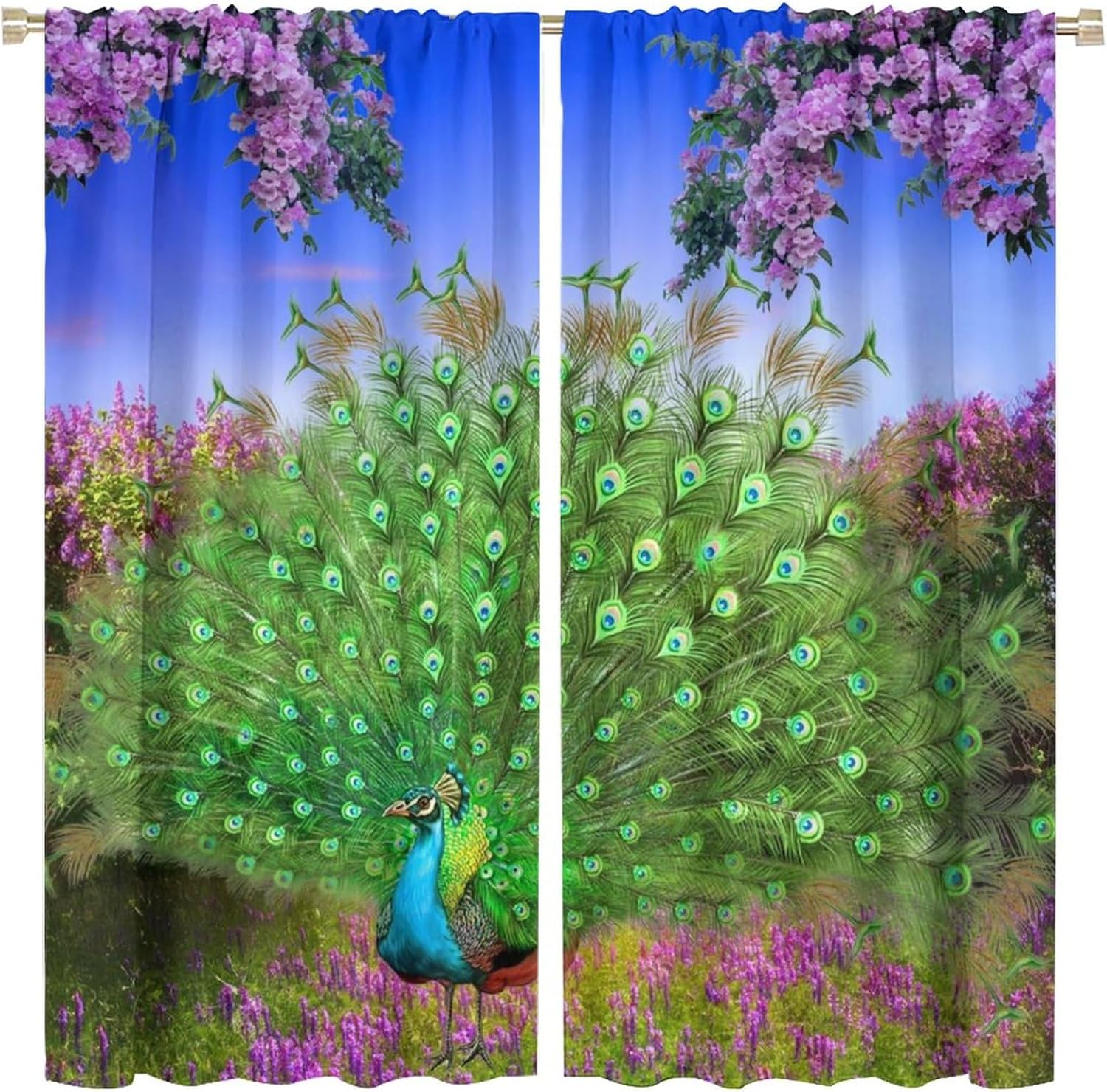 Welcome to our store. Total size: 45" L × 42" W (114cm × 107cm),Includes two pieces,each of which measures:45" length × 21" width (114cm × 53.5cm). Total size: 54" L × 42" W (137cm × 107cm),Includes two pieces,each of which measures:54" length × 21" width (68.5cm × 53.5cm). Total size: 63" L × 42" W (160cm × 107cm),Includes two pieces,each of which measures:63" length × 21" width (160cm × 53.5cm). Total size: 63" L × 55" W (160cm × 140cm),Includes two pieces,each of which measures:63" length × 27.5" width (160cm × 70cm). Total size: 63" L × 63" W (160cm × 160cm),Includes two pieces,each of which measures:63" length × 31.5" width (160cm × 80cm). Total size: 72" L × 63" W (183cm × 160cm),Includes two pieces,each of which measures:72" length × 31.5" width (183cm × 80cm). Total size: 63" L × 72" W (160cm × 183cm),Includes two pieces,each of which measures:63" length × 36" width (160cm × 91.5cm). Total size: 84" L × 84" W (214cm × 214cm),Includes two pieces,each of which measures:84" length × 42" width (214cm × 107cm). People always prefer using some decor to highlight the visual aesthetic. The brebasf Beautiful Peacock curtains is the beautiful choice for bedroom.Good and Healthy materialOur Watercolor Spring Garden Theme Purple Flowers Peacock curtain is made from a safe and durable polyester fabric ,a healthy choice for any living room.★ 95% polyester fabric.★ Easy to install. Easy to hang.★ Various style theme design,so that the bathroom is full of color and fun.Note1. Please allow a little bit of size deviation due to manual measurement.2. Due to differences in computer monitors,please allow a little bit of color difference between the picture and the object.