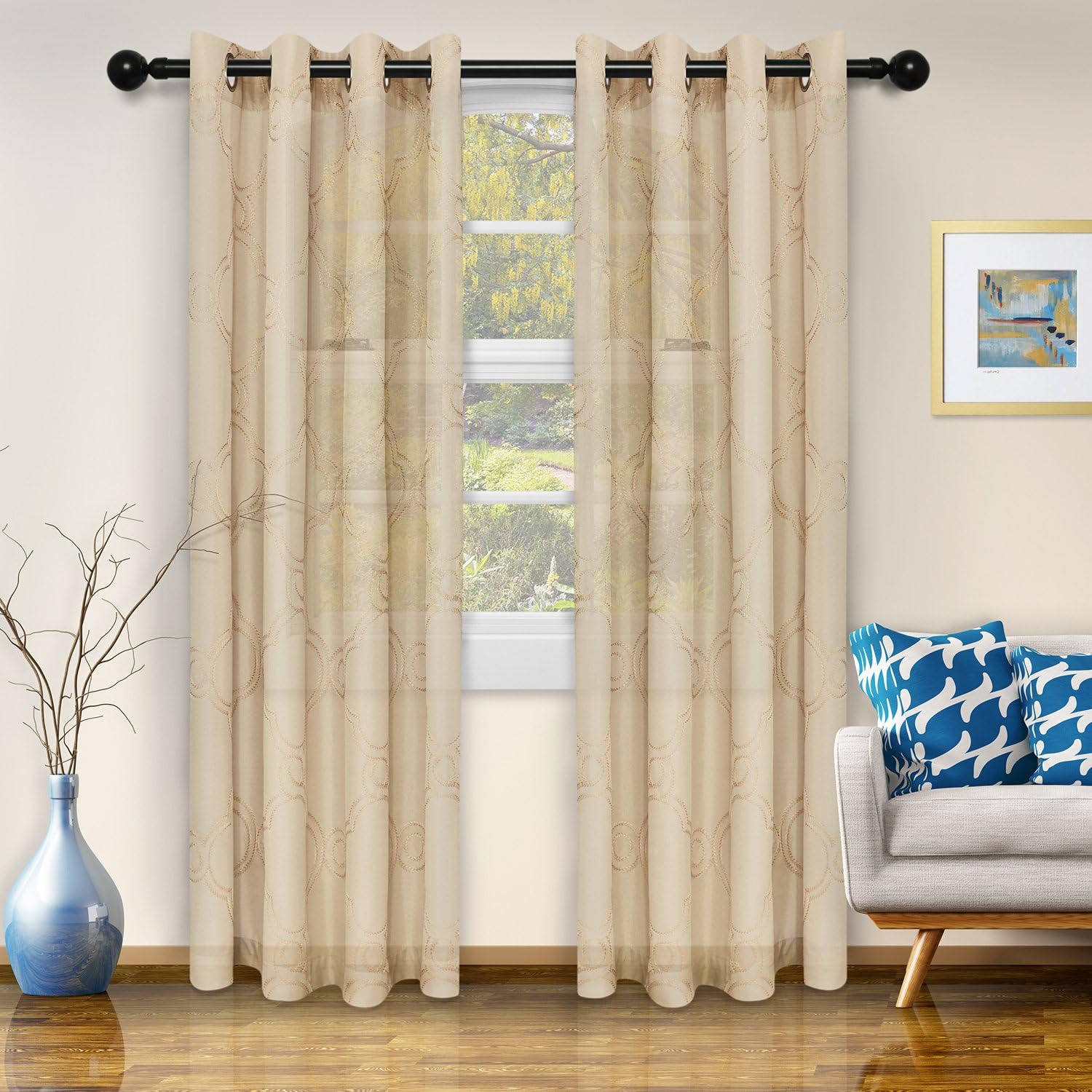 Add a charming accent to your decor with the Embroidered Semi-Sheer Moroccan Curtain Panel Set by Superior. This duo provides privacy while still allowing the sun to peek into your space, giving your home a cozy feel. These lovely curtains are embellished with a dainty embroidered leaf pattern that forms a Moroccan-inspired trellis design. This pair is crafted from quality, 100% polyester and is topped with a polished grommet header that allows for easy installation, giving these sheers a minimal modern flourish.