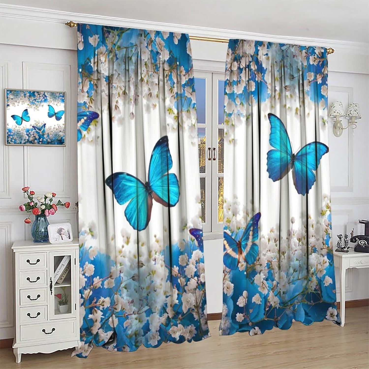 Product description High Quality Materials : Our window curtains are made of 100% high-quality polyester fabric with a soft, silky feel that complements most decor. The soft fabric is upmarket and durable, Our curtains can withstand years of use thanks to their quality finishing.Suitable for your bedroom, living room, dining room, infant room, kids room, nursery, office, hotel or other public place Blackout Curtains : Leading high-definition digital printing technology to ensure long-term use without fading, environmentally friendly, breathable, durable, anti-wrinkle. Keep the light out and help to retain the warmth in winter and keep the cool in the summer.Without chemical coating, which is healthier and safer for people, especially babies and kids.High performance on blocking out full light, UV prevent and furniture protection, bring the uniform style indoor of your house Good Workmanship : No loose threads.Premium sewing threads and stitching.All seams and hems are aligned.Do our best in every detail Easy Care : Our drapes are easy to maintain, with hand-washable material that is also ironable at a low temperature.Machine washable. Mild detergents do not bleach. Low temperature ironing